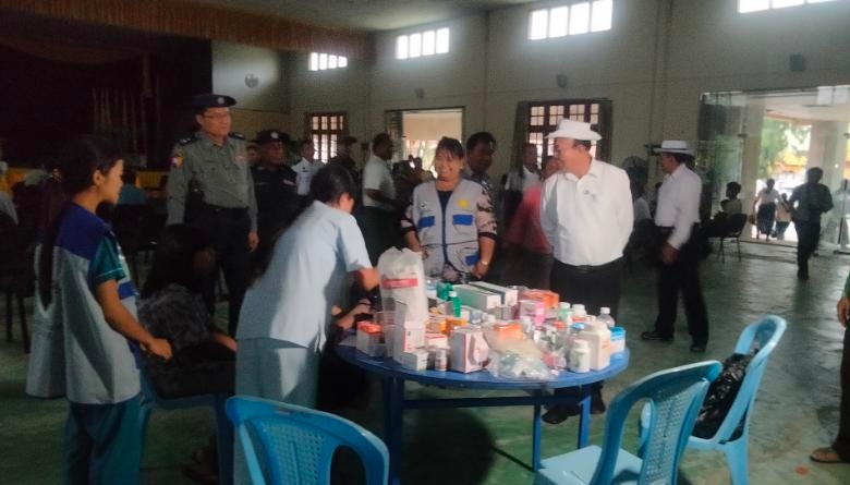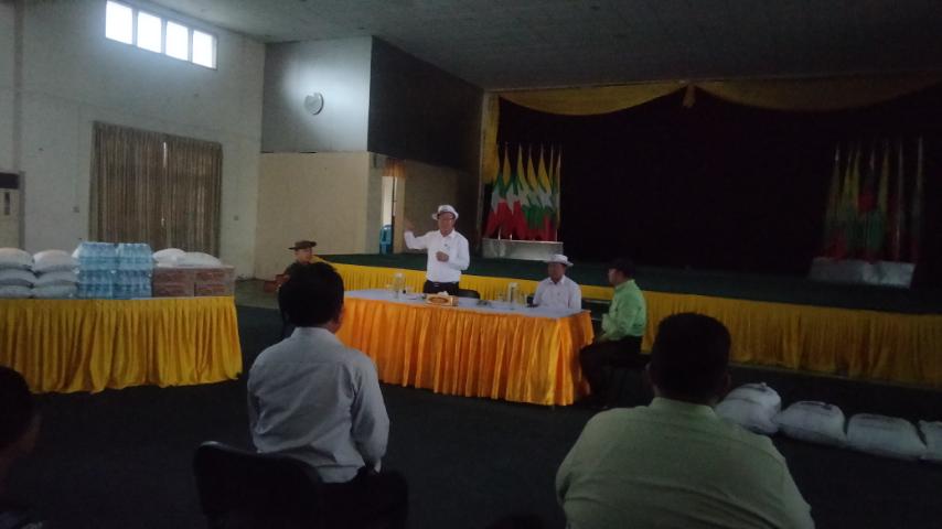 အဆိုပါ ရေဘေးသင့်ပြည်သူများအား ထောက်ပံ့လှူဒါန်ပွဲတွင် အမှတ်(၃) စစ်အခြေခံလေ့ကျင့်ရေးတပ်မှူး ဗိုလ်မှူးကြီး ဇော်မြင့်ဦး ခရိုင်စီမံအုပ်ချုပ်ရေးအဖွဲ့ဥက္ကဋ္ဌ ဦးမြင့်ထွန်း အဖွဲ့ဝင်ခရိုင်ရဲတပ်ဖွဲ့မှူး ဒုရဲမှူးကြီး မင်းဟန်နှင့် အဖွဲ့ဝင်များ မြို့နယ်စီမံအုပ်ချုပ်ရေးအဖွဲ့ဥက္ကဋ္ဌ ဦးမောင်ရွှေသိန်းနှင့် အဖွဲ့ဝင်များ၊ ဌာနဆိုင်ရာတာဝန်ရှိသူများ၊ ခရိုင်ကျန်းမာရေးဦးစီးမှူး ဒေါက်တာနီနီဝင်း မြို့နယ်ကျန်းမာရေးဦးစီးမှူး ဒေါက်တာမြင့်မြင့်မော် ပူးပေါင်းဆောင်ရွက်ခဲ့ကြောင်း သတင်းရရှိသည်။