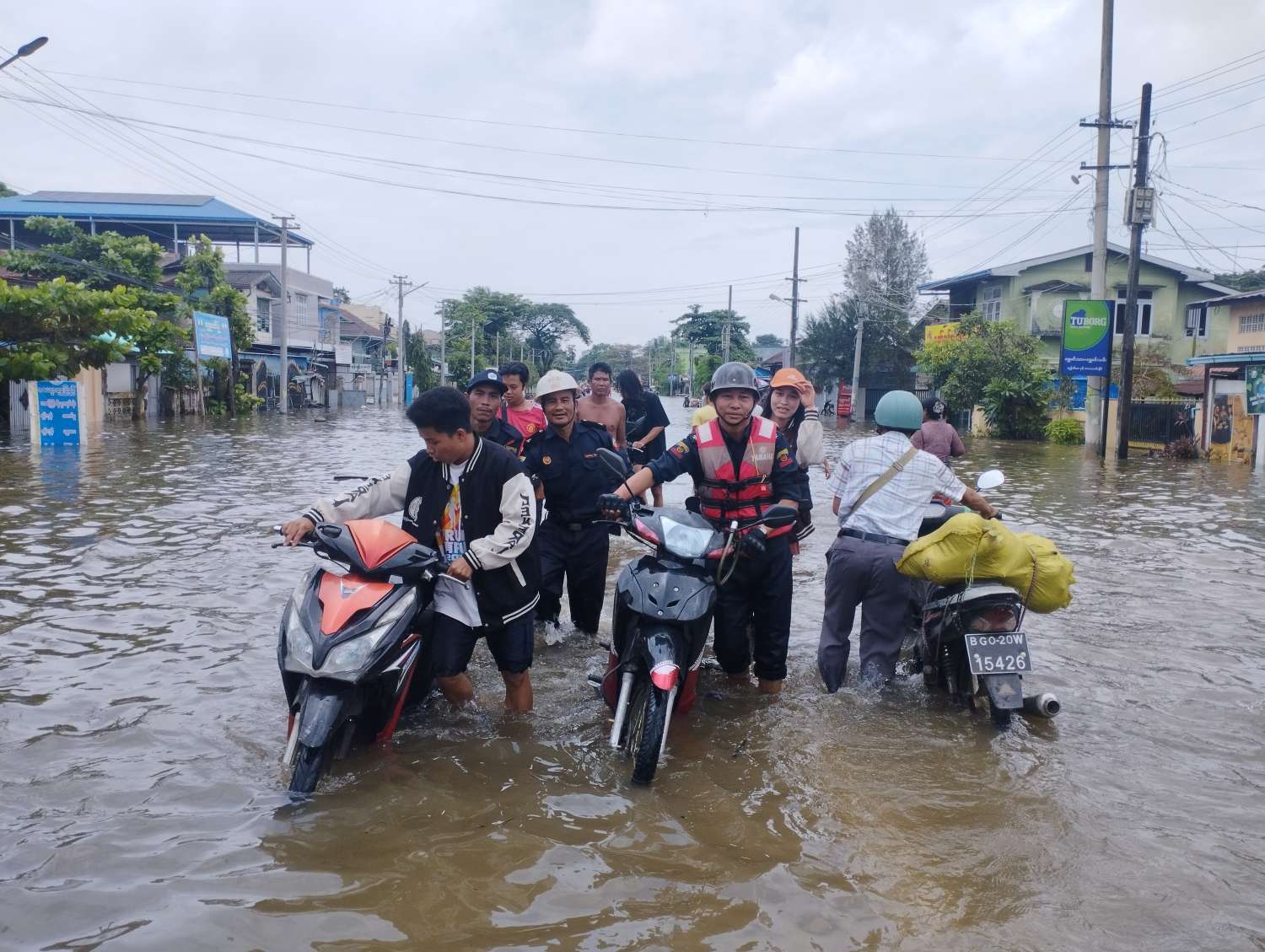 တောင်ငူမြို့၊ အမှတ် (၁)၊ (၈)၊ (၉)၊ (၁၀)၊ (၁၉)၊ (၂၀)၊ (၂၃)ရပ်ကွက်နှင့် ကျေးရွာများရှိမြေနိမ့်ပိုင်းများ၊ ယိုးဒယားပေါက်အနီး ရန်ကုန်-မန္တလေးလမ်းဟောင်း လမ်းမကြီးပေါ်သို့ စစ်တောင်းမြစ်ရေ ဝင်ရောက်လျက်ရှိကြောင်း၊ ရေဘေးသင့်ပြည်သူများအား တောင်ပိုင်းတိုင်းစစ်ဌာနချုပ်၊ တောင်ငူတပ်နယ်မှ တပ်မတော်သားများ၊ မီးသတ်တပ်ဖွဲ့ဝင်များနှင့် ပရဟိတအသင်းအဖွဲ့ဝင်များ ပူးပေါင်း၍ ဘေးလွတ်ရာသို့ ရွှေ့ပြောင်းပေးလျက်ရှိကြောင်း၊ တောင်ငူမြို့ပေါ်တွင် ရေဘေးရှောင်စခန်း (၄၅)ခု ဖွင့်လှစ်ထားလျက်ရှိပြီး တောင်ငူခရိုင် သဘာဝဘေးအန္တရာယ်ဆိုင်ရာစီမံခန့်ခွဲမှုအဖွဲ့မှ ဦးဆောင်၍ အဆိုပါရေဘေးရှောင်စခန်း ၄၅ခုတွင် ဆန်၊ဆီ၊ ကြက်ဥ၊ သောက်ရေသန့်နှင့် စားသောက်ဖွယ်ရာများ ထောက်ပံ့ပေးနိုင်ရန် ဆောင်ရွက်ပေးထားလျက်ရှိကြောင်း၊ တောင်ငူခရိုင် သဘာဝဘေးအန္တရာယ်ဆိုင်ရာစီမံခန့်ခွဲမှု ကွပ်ကဲမှုရုံးကို သာသနာ့ဗိမာန်တော်ကြီး၌ ဖွင့်လှစ်ထားလျက်ရှိကြောင်း၊ ရေဘေးသင့်ပြည်သူများအတွက် ဖုန်းနံပါတ်-၀၉၅၀၃၂၆၄၆ သို့ အရေးပေါ်ဆက်သွယ်နိုင်ကြောင်း သိရသည်။
