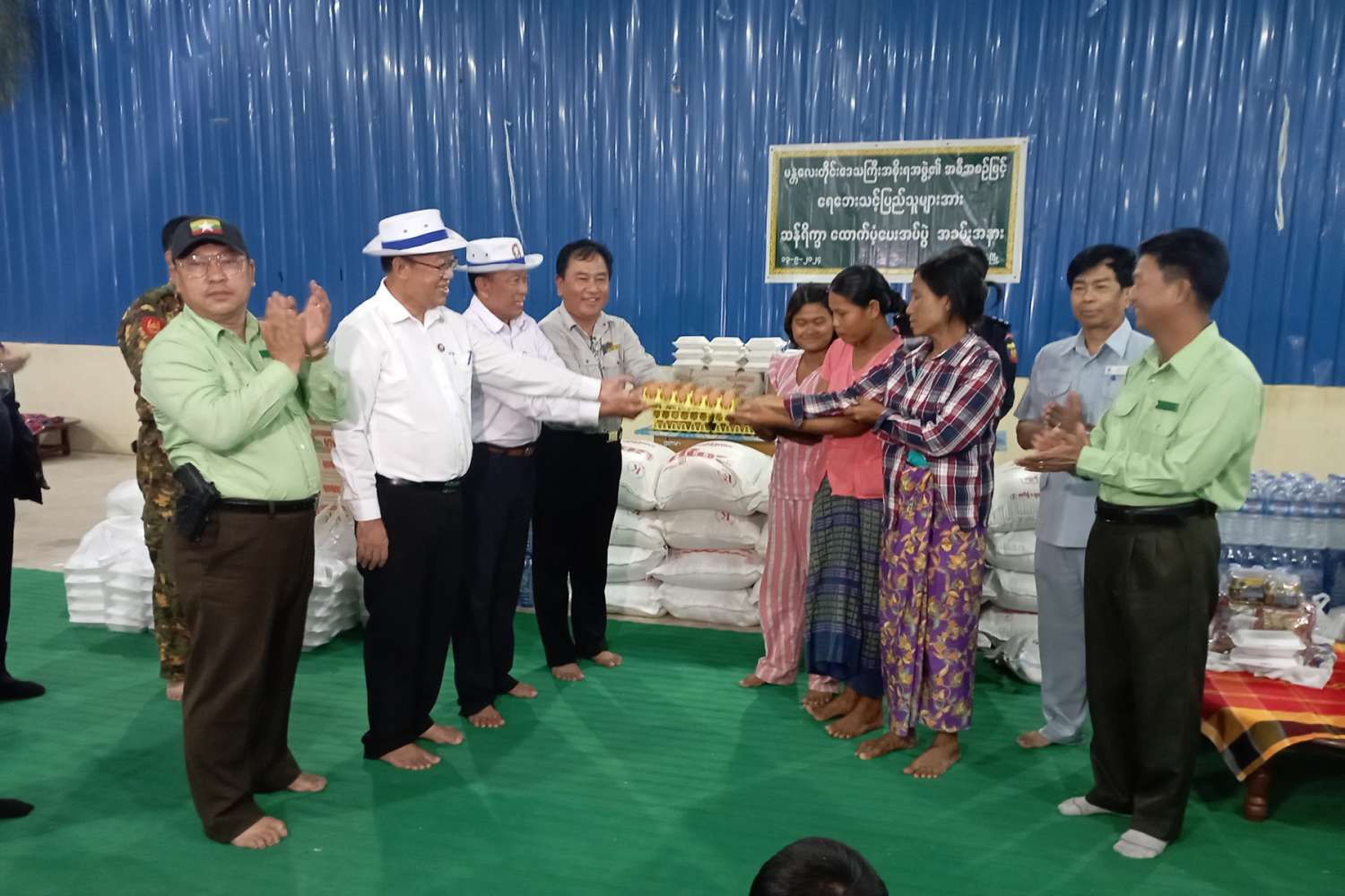 ဆက်လက်၍ မန္တလေးတိုင်းဒေသကြီးအစိုးရအဖွဲ့မှထောက်ပံ့သည့် ဆန်၊ သောက်ရေသန့်၊ ခေါက်ဆွဲခြောက် ထုတ်များ၊ ကြက်ဥနှင့်မုန့်ခြောက်ထုတ်များကို ပေးအပ်လှူဒါန်းရာ ရေဘေးရှောင် ပြည်သူများက လက်ခံရယူခဲ့ကြပြီး ရေဘေးရှောင်စခန်းတို့တွင် ကျန်းမာရေးဝန်ထမ်းများက ပြည်သူများအား ကျန်းမာရေးစောင့်ရှောက်မှုပေးနေသည့် အခြေအနေများကို ကြည့်ရှုအားပေး ခဲ့ကြောင်း သိရသည်။
