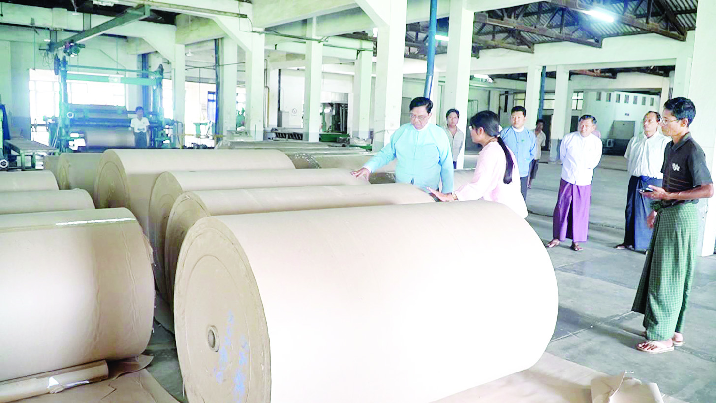 ဆက်လက်၍ ပြည်ထောင်စုဝန်ကြီးသည် ပဲခူးတိုင်းဒေသကြီးရေနီမြို့ရှိ စက္ကူစက်ရုံ(ရေနီ)သို့ ရောက်ရှိပြီး အထည်ချုပ်လုပ်ငန်းများ ဆောင်ရွက်နေသည့် အလုပ်ရုံများ၊ တစ်နေ့ပျော့ဖတ်အစိုတန် ၂၄၀၀ ထုတ်လုပ်နိုင်သည့် ပျော့ဖတ်စက်ရုံနှင့်တန် ၂၀ ထုပ်ပိုးစက္ကူစက်ရုံတို့တွင် ရေကြီးရေလျှံမှုကြောင့် ရေများဝင်ရောက် နိုင်မှုရှိ/မရှိ အခြေအနေကို လှည့်လည်ကြည့်ရှု စစ်ဆေးပြီး သဘာဝဘေးအန္တရာယ်များကြောင့် စက်ရုံရှိစက်ပစ္စည်းများ၊ အဆောက်အအုံများ ပျက်စီးမှုမရှိစေရေးအတွက် ဝန်ထမ်းများအားလုံး ဝိုင်းဝန်းပူးပေါင်း ကြိုတင်စီမံဆောင်ရွက်ထားကြရန်၊ ကုန်ထုတ်လုပ်မှုလုပ်ငန်းများကိုလည်း တိုးမြှင့်ဆောင်ရွက်နိုင်ရေး စီမံထားရှိရန် လမ်းညွှန်မှာကြားသည်။