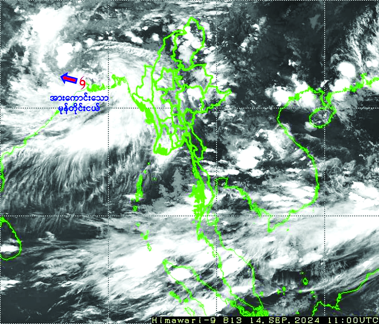 အားကောင်းသောမုန်တိုင်းငယ်အခြေအနေ ယနေ့ညနေ ၅ နာရီခွဲ တိုင်းထွာချက်များအရ အိန္ဒိယနိုင်ငံ အနောက်ဘင်္ဂလားပြည်နယ်နှင့် ယင်းနှင့်ဆက်စပ်လျက်ရှိသော ဘင်္ဂလားဒေ့ရှ်နိုင်ငံတို့တွင် ဖြစ်ပေါ်နေသည့် အားကောင်းသော မုန်တိုင်းငယ်သည် အနောက် - အနောက်တောင်ဘက်သို့ ရွေ့လျားခဲ့ပြီး အိန္ဒိယနိုင်ငံအနောက်ဘင်္ဂလား ပြည်နယ်ကုန်းတွင်းပိုင်းဒေသများသို့ ဆက်လက်ဖြတ်ကျော်လျက်ရှိသည်။
