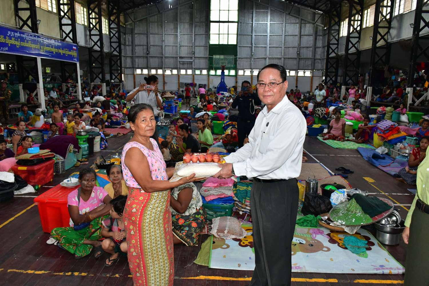 သံလွင်မြစ်ရေသည် ယနေ့နံနက်တိုင်းတာချက်များအရ ဘားအံမြို့၏စိုးရိမ်ရေမှတ် (၇၅၀)စင်တီ မီတာအထက် ၉၆၉ စင်တီမီတာသို့ စံချိန်တင်ကျော်လွန်ရောက်ရှိနေပြီး အနိမ့်ပိုင်း လူနေရပ်ကွက်အတွင်း ရေများဝင်ရောက်လာကာ ဆက်လက်နေထိုင်ရန် မသင့်တော်တော့သည့် အတွက် ရေဘေးကယ်ဆယ်ရေးစခန်းများဖွင့်လှစ်၍ ယာယီပြောင်းရွှေ့ နေထိုင်စေခဲ့ရာ ပြည်နယ် ဝန်ကြီးချုပ်နှင့်အဖွဲ့သည် ရွှေယဉ်မျှော်ပြည်တော်ဧစေတီတော် ယာယီရေဘေးကယ်ဆယ်ရေး စခန်းတွင် ယာယီပြောင်းရွှေ့နေထိုင်သော အိမ်ထောင်စု ၂၃၃ စု၊ လူဦးရေ ၁၁၈၆ ဦး၊ ဘားအံမြို့ မိုးလုံလေလုံအားကစားခန်းမ ယာယီကယ်ဆယ်ရေးစခန်းတွင် အိမ်ထောင်စု ၁၈၇ စု၊ လူဦးရေ ၈၀၃ ဦး၊ ဘားအံမြို့ အမှတ်(၃) အခြေခံပညာအထက်တန်းကျောင်း ယာယီရေဘေးကယ်ဆယ်ရေးစခန်းရှိ အိမ်ထောင်စု ၃၂၂ စု၊ လူဦးရေ ၁၄၄၆ ဦးတို့အား သွားရောက်တွေ့ဆုံအားပေး စကားပြောကြားပြီး ဆန်၊ ဆီ၊ ကြက်ဥအစရှိသော စားသောက်ကုန် ပစ္စည်းများထောက်ပံ့ပေးအပ်ခဲ့ကြသည်။