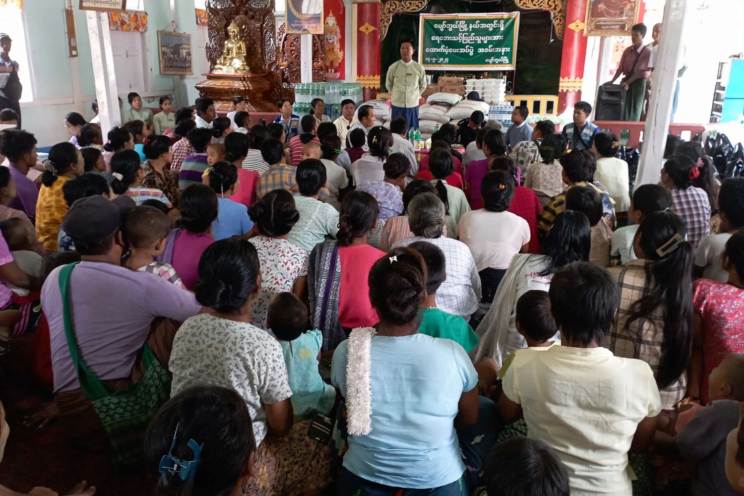 ပျော်ဘွယ်မြို့နယ်တွင် မိုးသည်းထန်စွာရွာသွန်းမှုကြောင့် ရေဘေးဒဏ်ခံစားခဲ့ရသည့် ပြည်သူများအား အလှူငွေနှင့်စားသောက်ကုန်များ ထောက်ပံ့ပေးအပ်ပွဲကို ယမန်နေ့မွန်းလွဲ (၂) နာရီခွဲက ရွှေပြည်ရန်နိုင်ရပ်ကွက်၊ အောင်သိဒ္ဓိဘုန်းတော်ကြီးကျောင်းဓမ္မာရုံတွင် ကျင်းပခဲ့သည်။