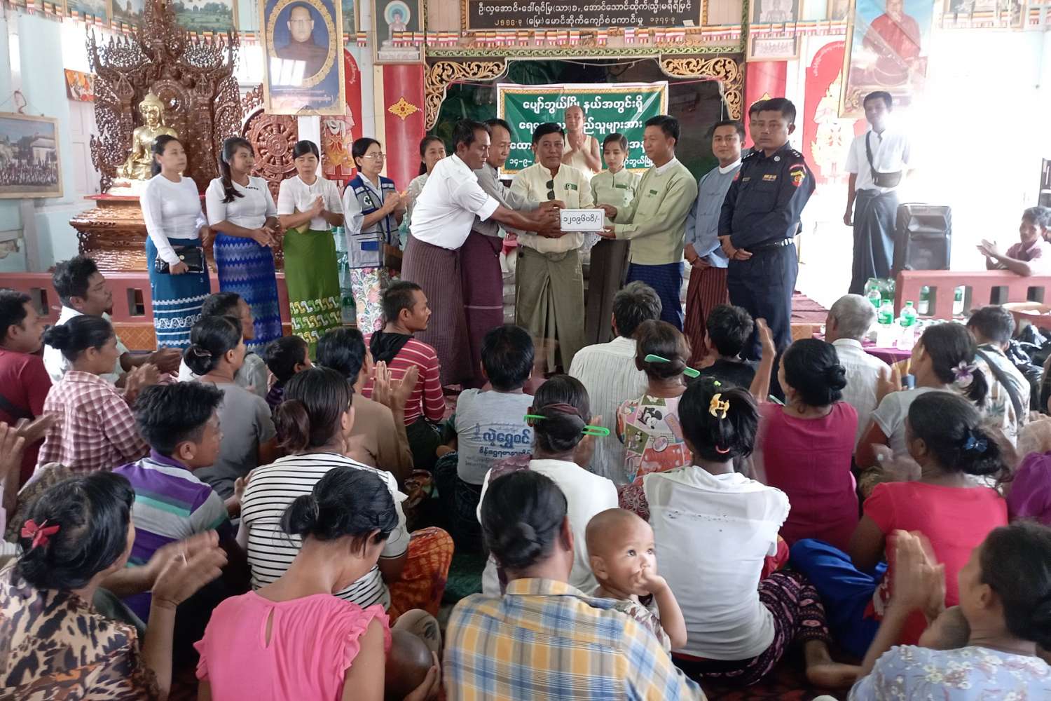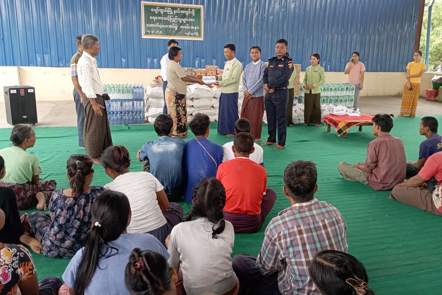 ဆက်လက်၍ ဘေးအန္တရာယ်ဆိုင်ရာစီမံခန့်ခွဲမှုဦးစီးဌာနမှထောက်ပံ့သည့် ရေဘေးသင့်ပြည်သူ (၂၄၈၀) ဦး၊ ရေဖြင့်မျောပါသွားသည့် အိမ်ထောင်စု (၂၀) စုနှင့် ရေမျောပါ၍သေဆုံးသူ (၉) ဦးတို့အတွက် စုစုပေါင်းငွေကျပ်သိန်း (၁၀၁၆၂၁၀၀)၊ ကယ်ဆယ်ရေးပစ္စည်း(၁၆)မျိုးပါ ပစ္စည်းပုံး(၂)ပုံးတို့အား မြို့နယ်သဘာဝဘေးအန္တရာယ်ဆိုင်ရာစီမံခန့်ခွဲမှုအဖွဲ့ဥက္ကဋ္ဌမှပေးအပ်ရာ သက်ဆိုင်ရာအုပ်ချုပ်ရေးမှူးများနှင့် ရေဘေးသင့်ပြည်သူများက လက်ခံရယူခဲ့ကြသည်။