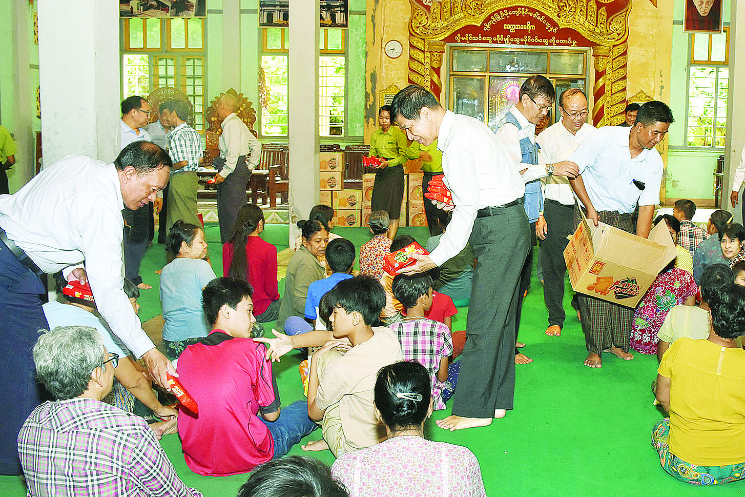 ယနေ့နံနက်ပိုင်းတွင် တိုင်းဒေသကြီးဝန်ကြီးချုပ် ဦးမျိုးအောင်နှင့် အဖွဲ့သည် ကျောက်ဆည်မြို့နယ် ကြက်မင်းတွန်ကျောင်းတိုက်ရှိ ဓမ္မာရုံတွင် ဖွင့်လှစ်ထားသည့် ယာယီရေဘေးရှောင်စခန်းသို့ လည်းကောင်း၊ ယင်းနောက် မြစ်သားမြို့ ဘူတာရပ်ကွက်ရှိ ရွှေဘုံသာဘုန်းကြီးကျောင်း၊ ရွာသစ်ကျေးရွာအုပ်စုရှိ မန်းမန္တလာဘုန်းကြီးကျောင်းသို့လည်းကောင်း၊ ကူမဲမြို့နယ် ရန်ကုန်-မန္တလေးကားလမ်းဘေးရှိ ရွှေဘုံသာဘုန်းကြီးကျောင်းတို့၌ ဖွင့်လှစ်ထားသည့် ယာယီရေဘေး ရှောင်စခန်းများသို့လည်းကောင်း သွားရောက်ပြီး ရေဘေးသင့်ပြည်သူများကို တွေ့ဆုံအားပေးစကားပြောကြားပြီး အစိုးရအဖွဲ့နှင့် အလှူရှင်များက စားရေရိက္ခာများ၊ သောက်ရေသန့်ဘူးများကိုလည်းကောင်း၊ လူမှုဝန်ထမ်း၊ ကယ်ဆယ်ရေးနှင့် ပြန်လည်နေရာချထားရေးဝန်ကြီးဌာန ဘေးအန္တရာယ်ဆိုင်ရာ စီမံခန့်ခွဲမှုဦးစီးဌာနမှ စုစုပေါင်းထောက်ပံ့ငွေကျပ် ၂၆၇၁၄၁၀၀ ကိုထောက်ပံ့ပေးအပ်ကာ ကျန်းမာရေးစောင့်ရှောက်ပေးနေမှုများကို လိုက်လံကြည့်ရှုသည်။