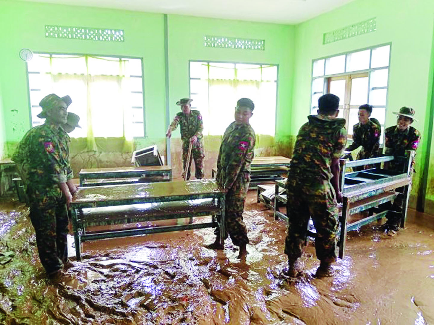 ထိုသို့ နေပြည်တော်ကောင်စီနယ်မြေအတွင်း ရေကြီးရေလျှံမှု ဖြစ်ပေါ်ခဲ့သည့် ရပ်ကွက်/ ကျေးရွာများမှ ကူညီရွှေ့ပြောင်းရန် လိုအပ်နေသူများကို အချိန်နှင့်တစ်ပြေးညီ ကူညီကယ်ဆယ်ရွှေ့ပြောင်းပေးခြင်း လုပ်ငန်းများကို အင်တိုက်အားတိုက် တက်ကြွစွာ ပူးပေါင်းဆောင်ရွက်ပေးလျက်ရှိသည်။ ယနေ့တွင်လည်း ရေကြီးရေလျှံဖြစ်ပေါ်နေသည့် လယ်ဝေးမြို့နယ်၊ နနွင်းအိုင်ကျေးရွာ၊ ကျောက်အိုးကျေးရွာ၊ အောင်သပြေကျေးရွာ၊ ကြို့တန်းကျေးရွာ၊ သရက်ချောင်းကျေးရွာ၊ လက်ပံတန်းကျေးရွာ၊ ကျောက်တစ်လုံးကျေးရွာများသို့လည်းကောင်း၊ မန္တလေးတိုင်းဒေသကြီး၊ ကျောက်ဆည်မြို့နယ်၊ မြစ်သားမြို့နယ်၊ ကူမဲမြို့နယ်၊ ရမည်းသင်းမြို့နယ်တို့၌လည်းကောင်း တပ်မတော်သားများ၊ မြန်မာနိုင်ငံရဲတပ်ဖွဲ့ဝင်များ၊ မီးသတ်တပ်ဖွဲ့ဝင်များ၊ ကြက်ခြေနီတပ်ဖွဲ့ဝင်များနှင့် လူမှုဝန်ထမ်းကယ်ဆယ်ရေးအဖွဲ့များက ကူညီကယ်ဆယ်ရွှေ့ပြောင်းပေးခြင်းလုပ်ငန်းများ ဆောင်ရွက်ပေးခြင်းနှင့် ရေများပြန်လည်ကျဆင်းသွားသည့်နေရာများရှိ လမ်း၊ တံတားများ၊ ရပ်ကွက်၊ ကျေးရွာများအတွင်း၌ တင်ကျန်ခဲ့သည့်နုန်းများ၊ သစ်ပင်သစ်ကိုင်းများ ဖယ်ရှားပေးခြင်းအပါအဝင် သန့်ရှင်းရေးလုပ်ငန်းများကို ဒေသခံပြည်သူများနှင့်ပူးပေါင်း၍ တက်ကြွစွာ ဆောင်ရွက်ပေးလျက်ရှိသည်။