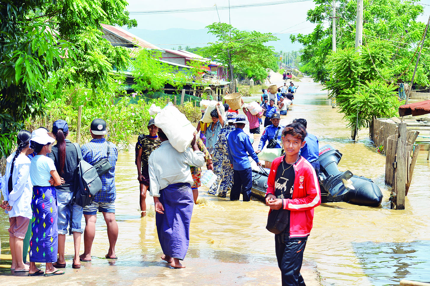 ရေကြီးရေလျှံမှု ဖြစ်ပေါ်ခဲ့သည့် မြို့နယ်များတွင် ယာယီရေဘေးရှောင်စခန်းများ ဖွင့်လှစ်ပေးထားပြီး လိုအပ်သည့် ကျန်းမာရေးစောင့်ရှောက်မှုလုပ်ငန်းများကိုလည်း ဆောင်ရွက်ပေးလျက်ရှိပြီး ရေဘေးသင့်ပြည်သူများ စားသောက်ရေးအခက်အခဲမရှိစေရေးအတွက် တပ်မတော် (ကြည်း၊ ရေ၊ လေ) မိသားစုဝင်များ၊ ဌာနဆိုင်ရာတာဝန်ရှိသူများနှင့် စေတနာရှင်ပြည်သူများက ထမင်းဘူးများ၊ ရေသန့်များနှင့် အခြားစားသောက်ဖွယ်ရာများကို လိုက်လံဝေငှပေးလျက်ရှိသည်။