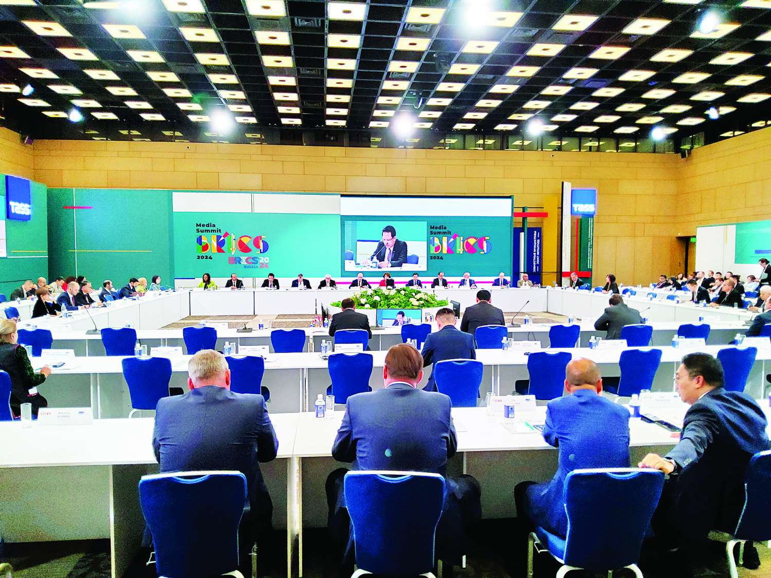 ဆက်လက်၍ ဝင်ရိုးစုံကမ္ဘာကြီးတွင် တည်ငြိမ်မှုနှင့် ပူးပေါင်းဆောင်ရွက်မှုကို အားကောင်းစေသည့် BRICS Media အသိုက်အဝန်း၏ အခန်းကဏ္ဍခေါင်းစဉ်ဖြင့် စားပွဲဝိုင်းဆွေးနွေးပွဲကို ကျင်းပရာ BRICS အဖွဲ့ဝင်နိုင်ငံများမှ မီဒီယာဆိုင်ရာအကြီးအကဲများက ပါဝင်ဆွေးနွေးကြပြီး BRICS Media Summit ပထမနေ့ကို ရပ်နားလိုက်သည်။