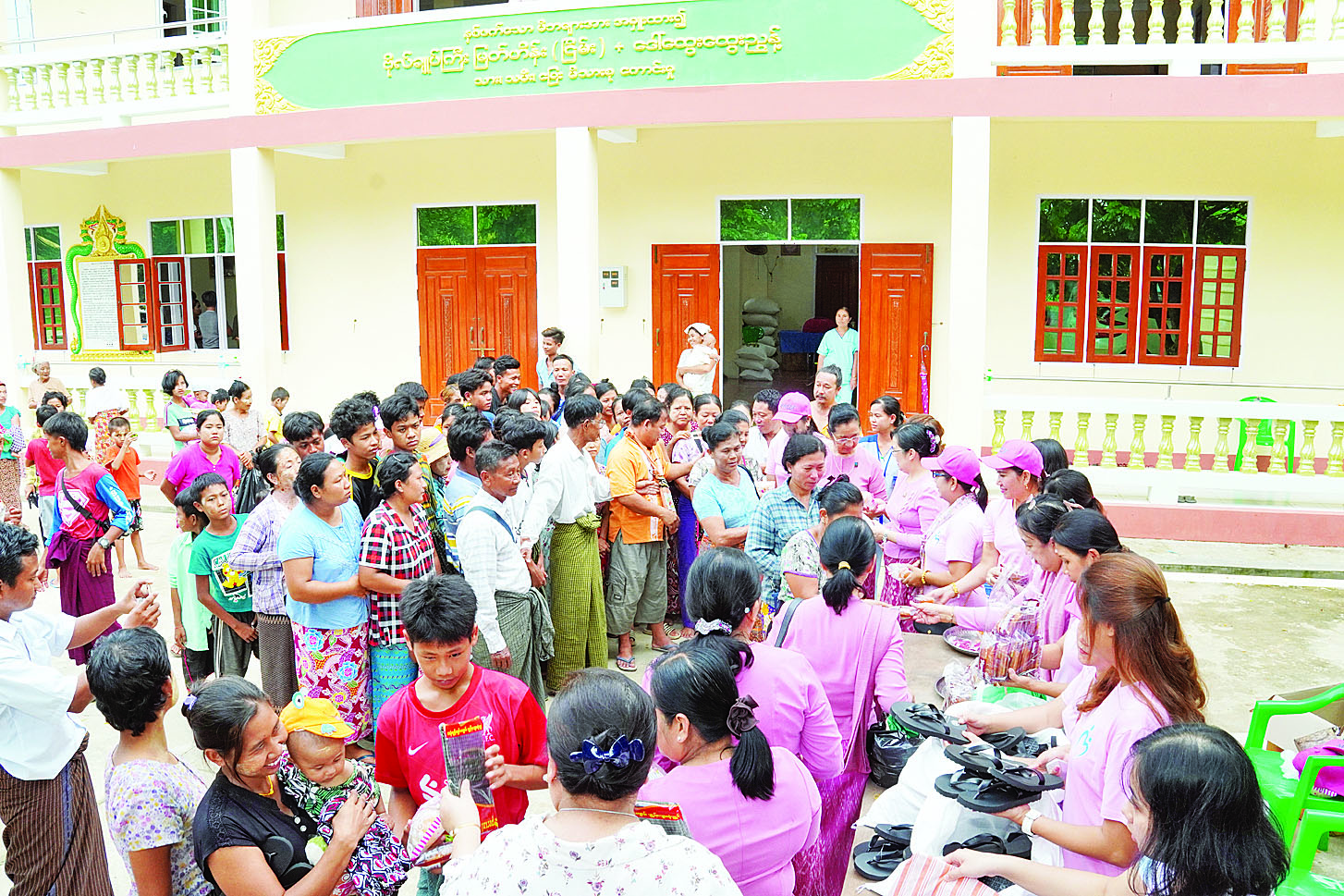မြန်မာနိုင်ငံ အမျိုးသမီးများနှင့် ကလေးသူငယ်များ ဘဝမြှင့်တင်ရေးအသင်း (ဗဟို) နှင့် နေပြည်တော် အမျိုးသမီးများနှင့် ကလေးသူငယ်များ ဘဝမြှင့်တင်ရေးအသင်းတို့မှ ယနေ့နေ့လယ်ပိုင်းတွင် ပြည်ထောင်နယ်မြေ နေပြည်တော်အတွင်း မိုးသည်းထန်စွာ ရွာသွန်းမှုကြောင့် ရေဘေးသင့်ပြည်သူများအား နေပြည်တော် လယ်ဝေးမြို့နယ် ဗောဓိကုန်းကျေးရွာ ဗောဓိကုန်းမိုးကုတ်ဝိပဿနာဓမ္မရိပ်သာကျောင်းတိုက်နှင့် ပျံချီအုပ်စုဧလာတိဏ္ဏကျောင်းတိုက်များသို့ သွားရောက်၍ အားပေးလှူဒါန်းသည်။