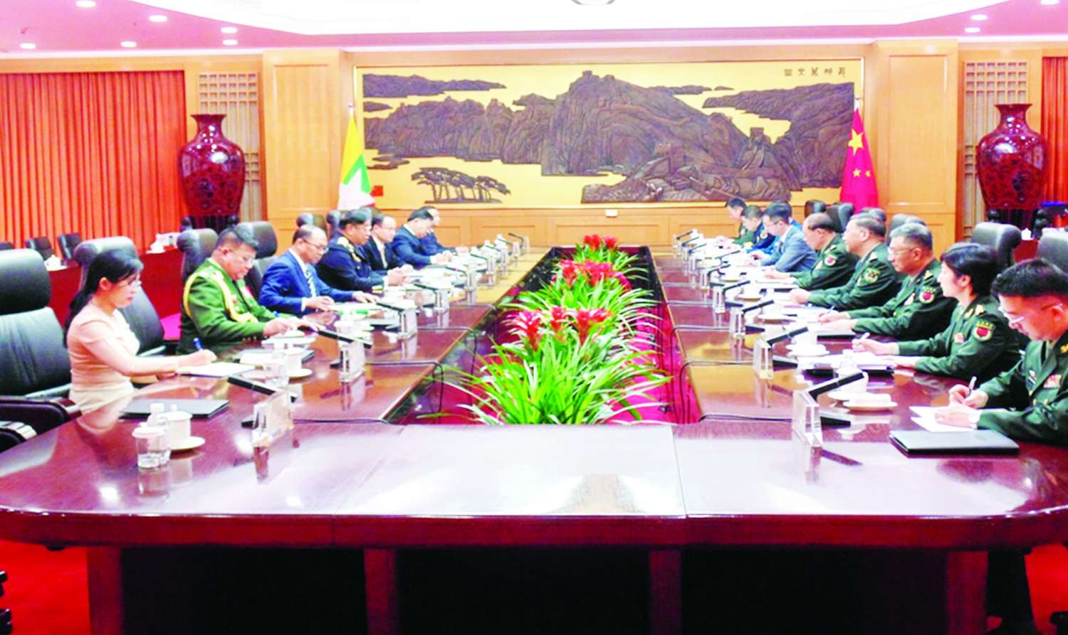 နိုင်ငံတော်စီမံအုပ်ချုပ်ရေးကောင်စီအဖွဲ့ဝင် ဒုတိယဝန်ကြီးချုပ်နှင့် ပြည်ထောင်စုဝန်ကြီးသည် ခရီးစဉ်အတွင်း တရုတ်ပြည်သူ့ သမ္မတနိုင်ငံဆိုင်ရာ မြန်မာနိုင်ငံ သံရုံးသို့သွားရောက်၍ မြန်မာသံအမတ်ကြီး၊ စစ်သံမှူး (ကြည်း၊ ရေ၊ လေ) နှင့် သံရုံး၊ စစ်သံရုံးတို့မှ အရာထမ်း၊ အမှုထမ်းများ၊ မိသားစုများနှင့်တွေ့ဆုံကာ နိုင်ငံတော်၏ လက်ရှိဖြစ်ပေါ်တိုးတက်မှုအခြေအနေများကို ရှင်းလင်းပြောကြားပြီး သံရုံး၊ စစ်သံရုံးဝန်ထမ်းများနှင့် မိသားစုများအတွက် လက်ဆောင်ပစ္စည်းများကိုပေးအပ်ကာ ပေကျင်းမြို့ရှိ Capital လေဆိပ်မှတစ်ဆင့် ရန်ကုန်မြို့သို့ ပြန်လည်ထွက်ခွာခဲ့ကြသည်။