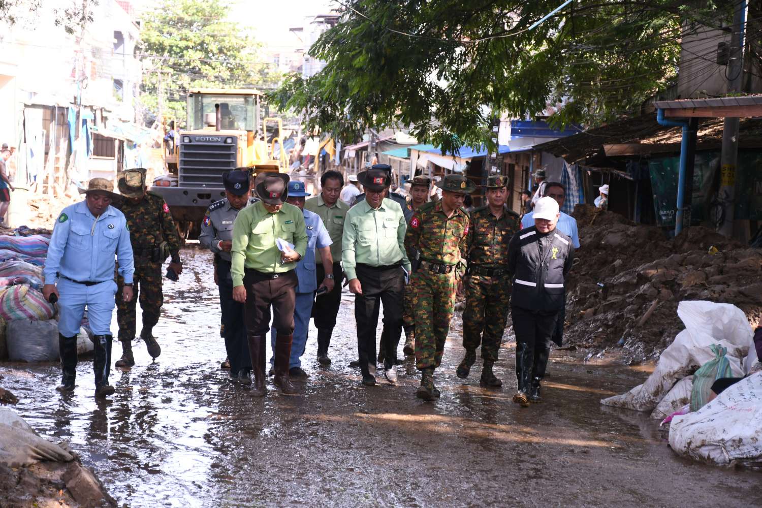 ထို့နောက် အောင်မြတ်ခန်းမ၌ အလှူရှင်များလှူဒါန်းထားသည့် ရေဘေးကယ်ဆယ်ရေးပစ္စည်းများနှင့် စားသောက်ဖွယ်ရာများအား သွားရောက်ကြည့်ရှုအားပေးခဲ့ပြီး မြန်မာ-ထိုင်း နှစ်နိုင်ငံ နယ်စပ်ဒေသဖြစ်သည့် အမှတ် (၁)၊ (၂) ချစ်ကြည်ရေးတံတားနှင့် မယ်ဆိုင်ချောင်အခြေအနေများ၊ ရေများဝင်ရောက်သည့်နေရာများနှင့် ပြန်လည်ထူထောင်ရှင်းလင်းရေးလုပ်ငန်းဆောင်ရွက်နေမှုအခြေအနေများကို လှည့်လည်ကြည့်ရှုစစ်ဆေးရာ သက်ဆိုင်ရာကဏ္ဍအလိုက် ဌာနဆိုင်ရာတာဝန်ရှိသူများက လိုက်လံရှင်းလင်းပြသခဲ့သည်။ ယင်းနောက် တိုင်းမှူးနှင့်အဖွဲ့သည် တာချီလိတ်မြို့ မဟာဗောဓိကမ္မဋ္ဌာန်းကျောင်းတိုက် ပဓာနမဟာနာယကဆရာတော်ဘုရားကြီး ဘဒ္ဒန္တဉာဏဝရ (သဒ္ဓမ္မဇောတိကဓဇ) ၏ အန္တိမအဂ္ဂိဈာပနပူဇာသဘင်အခမ်းအနားကျင်းပမည့်အခြေအနေနှင့် ဆရာတော်ဘုရားကြီး၏ ရုပ်ကလာပ်တော်အား ဖူးမြော်ကြည်ညိုကာ ဝတ္ထုငွေများ ကပ်လှူပူဇော်ခဲ့ကြောင်း သိရသည်။