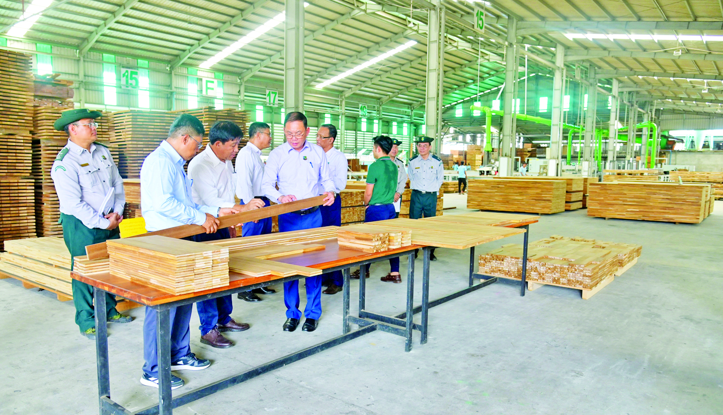 ဆက်လက်၍ ပြည်ထောင်စုဝန်ကြီးသည် ဒဂုံမြို့သစ် (အရှေ့ပိုင်း) မြို့နယ် ဒဂုံအရှေ့စက်မှုဇုန် အတွင်းရှိ National Wood Industry သစ်အချော ထည်စက်ရုံသို့သွားရောက်၍ သစ်အချောထည် ထုတ်လုပ်နေမှုအဆင့်ဆင့်ကို လှည့်လည်ကြည့်ရှုစစ်ဆေးပြီး ပြည်ထောင်စုဝန်ကြီးက သစ်အခြေခံစက်ရုံများအနေဖြင့် အရည်အသွေးပြည့်ဝသော သစ်အချောထည်ပစ္စည်းများကို တိုးမြှင့်ထုတ်လုပ်ပြီး ပြည်တွင်း/ ပြည်ပဈေးကွက်များသို့ တင်ပို့ခြင်းဖြင့် နိုင်ငံခြားငွေရှာဖွေမှုကို တစ်ဖက်တစ်လမ်းက အထောက်အကူပြုလျက်ရှိကြောင်း၊ ပြည်ပဈေးကွက်သို့ သစ်အချောထည်ပစ္စည်းများ ပိုမိုတင်ပို့နိုင်ရေးအတွက် ကုန်ကြမ်းရရှိရေးနှင့် အခြားလိုအပ်သည်များကို ပေါင်းစပ်ဆောင်ရွက်ပေးသွားမည်ဖြစ်ကြောင်း ပြောကြားသည်။