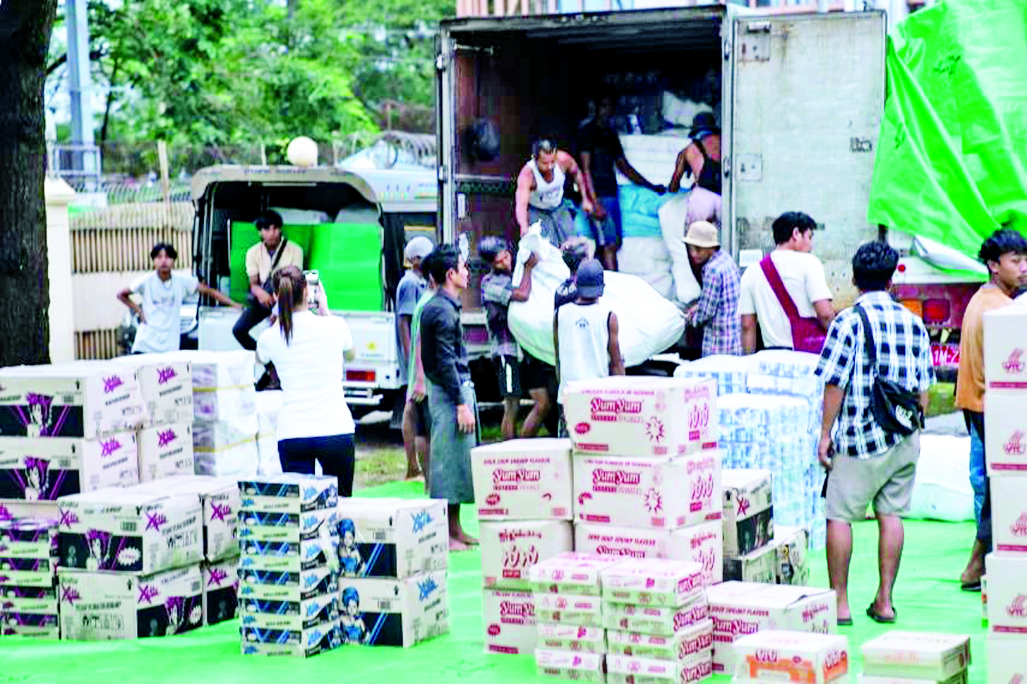 ရေကြီးရေလျှံဖြစ်ပေါ်လျက်ရှိသော မြို့နယ်အသီးသီးရှိ ဘဏ်ခွဲအသီးသီးမှအရာထမ်းများ၊ ဝန်ထမ်းများနှင့် မြို့မိမြို့ဖများပူးပေါင်း၍ တစ်နိုင်ငံလုံးရှိ ရေဘေးသင့်နေရာဒေသများအတွက် အချိန်နှင့် တစ်ပြေးညီ ပံ့ပိုးကူညီဆောင်ရွက်လျက်ရှိသည်။