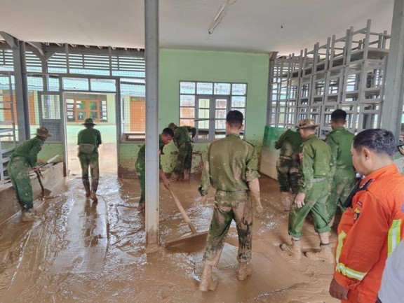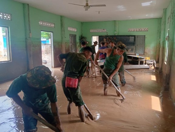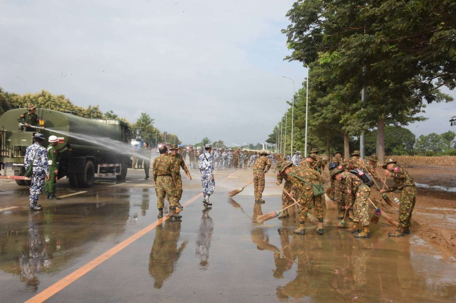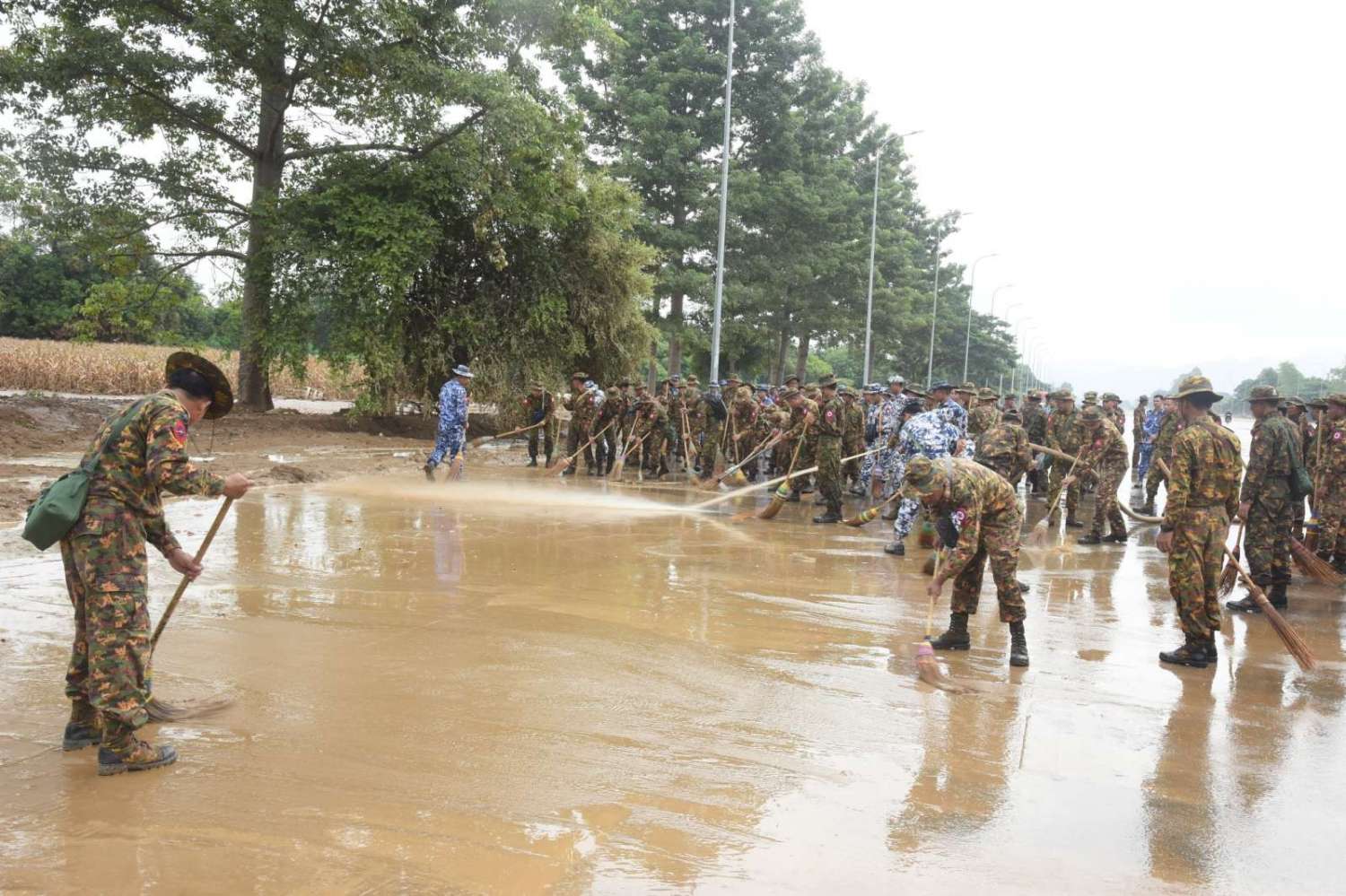 ယနေ့တွင်လည်း တပ်မတော်သားများ၊ မြန်မာနိုင်ငံရဲတပ်ဖွဲ့ဝင်များ၊ မီးသတ်တပ်ဖွဲ့ဝင်များ၊ ကြက်ခြေနီတပ်ဖွဲ့ဝင်များနှင့် လူမှုဝန်ထမ်းကယ်ဆယ်ရေးအဖွဲ့များက ရေများပြန်လည်ကျဆင်းသွားသည့် နေပြည်တော်ကောင်စီနယ်မြေ၊ ဇေယျာသီရိမြို့နယ်၊ ပျဉ်းမနားမြို့နယ်၊ လယ်ဝေးမြို့နယ်၊ ပုဗ္ဗသီရိမြို့နယ်၊ ရှမ်းပြည်နယ် (တောင်ပိုင်း)၊ ကလောမြို့နယ်၊ မန္တလေးတိုင်းဒေသကြီးနှင့် ရမည်းသင်းမြို့နယ်အပါအဝင် အခြားမြို့နယ်တို့ရှိ ရပ်ကွက်၊ ကျေးရွာများမှ ဘုန်းတော်ကြီးကျောင်းများ၊ စာသင်ကျောင်းများ၊ ဆေးရုံ၊ ဆေးခန်းများ၊ ဌာနဆိုင်ရာအဆောက်အဦများတွင် လိုအပ်သည့် သန့်ရှင်းရေးလုပ်ငန်းများ ဆောင်ရွက်ပေးခြင်း၊ လိုအပ်သည်များ ကူညီရွှေ့ပြောင်းပေးခြင်းနှင့် လမ်း၊ တံတားများ၊ ရပ်ကွက်၊ ကျေးရွာများအတွင်း၌ တင်ကျန်ခဲ့သည့် နုန်းများ၊ သစ်ပင်သစ်ကိုင်းများ ဖယ်ရှားပေးခြင်းအပါအဝင် အခြားလိုအပ်သည်များကို ဒေသခံပြည်သူများနှင့် ပူးပေါင်း၍ တက်ကြွစွာဆောင်ရွက်ပေးလျက်ရှိသည်။