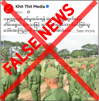 မကွေးတိုင်းဒေသကြီး၊ ပခုက္ကူမြို့နယ်တွင် လူငယ်တစ်ဦး ပြည်သူ့စစ်မှုထမ်းဆောင်ရန် တိမ်းရှောင်သဖြင့် ပခုက္ကူမြို့နယ်၊ အမှတ်(၃)ရပ်ကွက် ၎င်းလူငယ်၏ လေဖြတ်နေသော မိခင်ဖြစ်သူကို တာဝန်ရှိသူများက ဓားစာခံအဖြစ် ဖမ်းဆီးထားသည်ဟု တရားမဝင်ပြည်ဖျက်မီဒီယာများက သတင်းတု၊ သတင်းအမှားများ မဟုတ်မမှန် လုပ်ကြံရေးသားလျက်ရှိသည်ကို တွေ့ရှိရသည်။