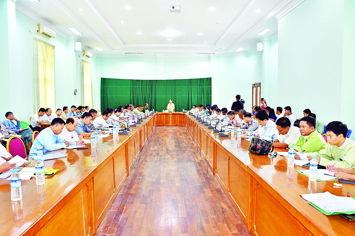 နေပြည်တော်ကောင်စီ သဘာဝဘေးအန္တရာယ်ဆိုင်ရာ ကနဦးလိုအပ်ချက် စစ်တမ်းကောက်ယူရေး၊ ပျက်စီးဆုံးရှုံးမှုအတည်ပြုရေးနှင့် လိုအပ်ချက်များ ဆန်းစစ်ဖော်ထုတ်ရေးလုပ်ငန်းကော်မတီ လုပ်ငန်းညှိနှိုင်းအစည်းအဝေးကို ယနေ့မွန်းလွဲပိုင်းတွင် နေပြည်တော်ကောင်စီရုံးအစည်းအဝေးခန်းမ (၂) ၌ ကျင်းပရာ စီမံကိန်းနှင့်ဘဏ္ဍာရေးဝန်ကြီးဌာန ဒုတိယဝန်ကြီး ဒေါ်သန်းသန်းလင်း၊ နေပြည်တော်ကောင်စီဝင်များ ဖြစ်ကြသည့် ဗိုလ်မှူးကြီးရဲမိုး၊ ဦးမြင့်စိုး၊ ဌာနဆိုင်ရာများ၊ နေပြည်တော် သဘာဝဘေးအန္တရာယ်ဆိုင်ရာစီမံခန့်ခွဲမှုအဖွဲ့ အဖွဲ့ဝင်များ၊ ခရိုင်နှင့် မြို့နယ်စီမံအုပ်ချုပ်ရေးအဖွဲ့ဥက္ကဋ္ဌများ တက်ရောက်ကြသည်။