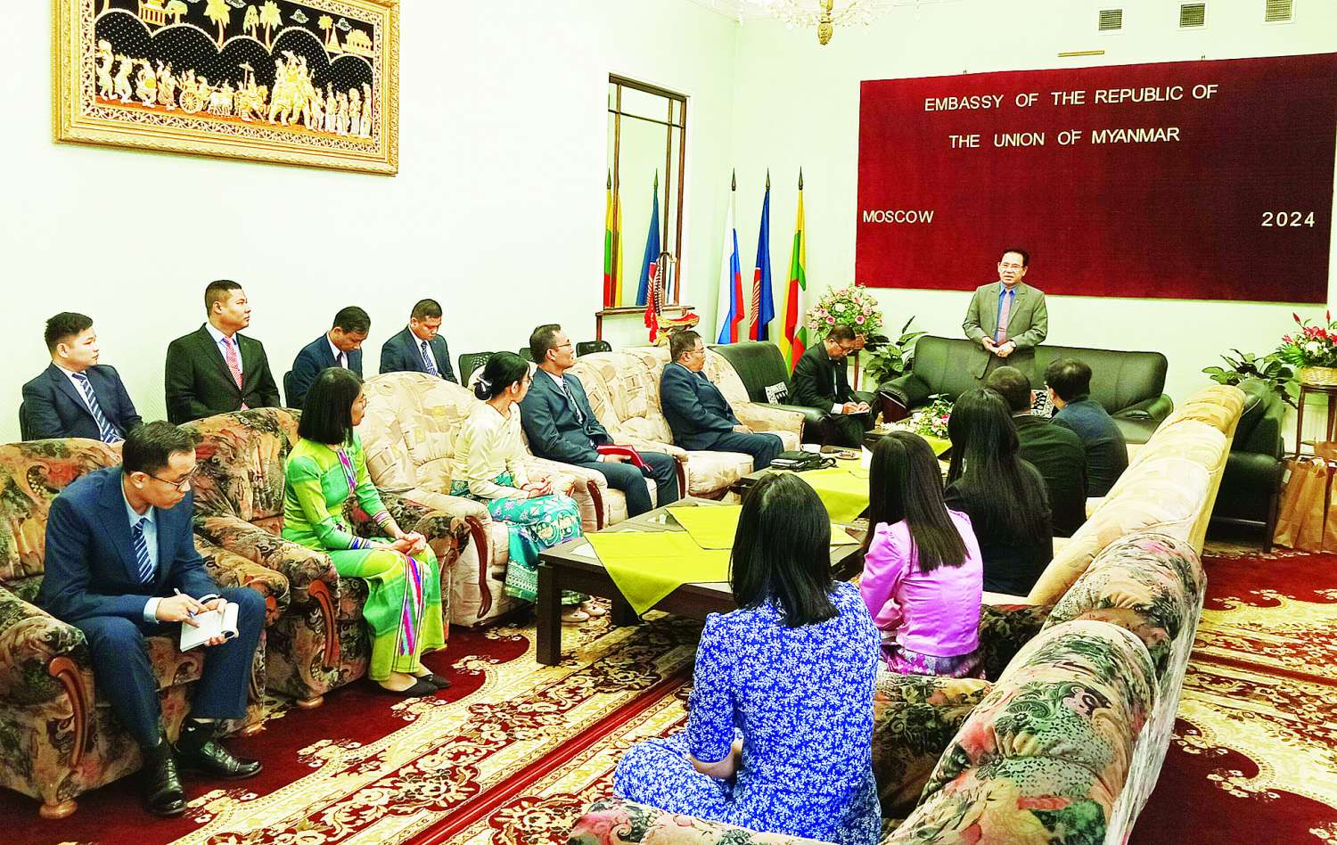 ပြည်ထောင်စုဝန်ကြီး ဦးမောင်မောင်အုန်းသည် စက်တင်ဘာ ၁၇ ရက် နံနက်ပိုင်းတွင် မော်စကိုမြို့ရှိ ရုရှားဖက်ဒရေးနိုင်ငံဆိုင်ရာ မြန်မာနိုင်ငံသံရုံးသို့ ရောက်ရှိပြီး သံအမတ်ကြီး ဦးသစ်လင်းအုန်း၊ စစ်သံမှူး ဗိုလ်မှူးချုပ်မိုးကျော်နှင့် သံရုံး၊ စစ်သံရုံးဝန်ထမ်းများအားတွေ့ဆုံကာ နိုင်ငံတော်၏ လက်ရှိအခြေအနေမှန်များ၊ သတင်းတုသတင်းမှားများအပေါ် ဆန်းစစ်ဝေဖန်ပိုင်းခြားနိုင်ရေး၊ နိုင်ငံတော်ဝန်ကြီးချုပ်ဦးဆောင်၍ ယနေ့ ပညာရေး၊ ကျန်းမာရေး၊ ရေဘေးကယ်ဆယ်ရေးနှင့် ပြန်လည်ထူထောင်ရေး၊ နိုင်ငံတော်လုံခြုံရေးအတွက် ဆောင်ရွက်နေမှုများကို ရှင်းလင်းဆွေးနွေးသည်။