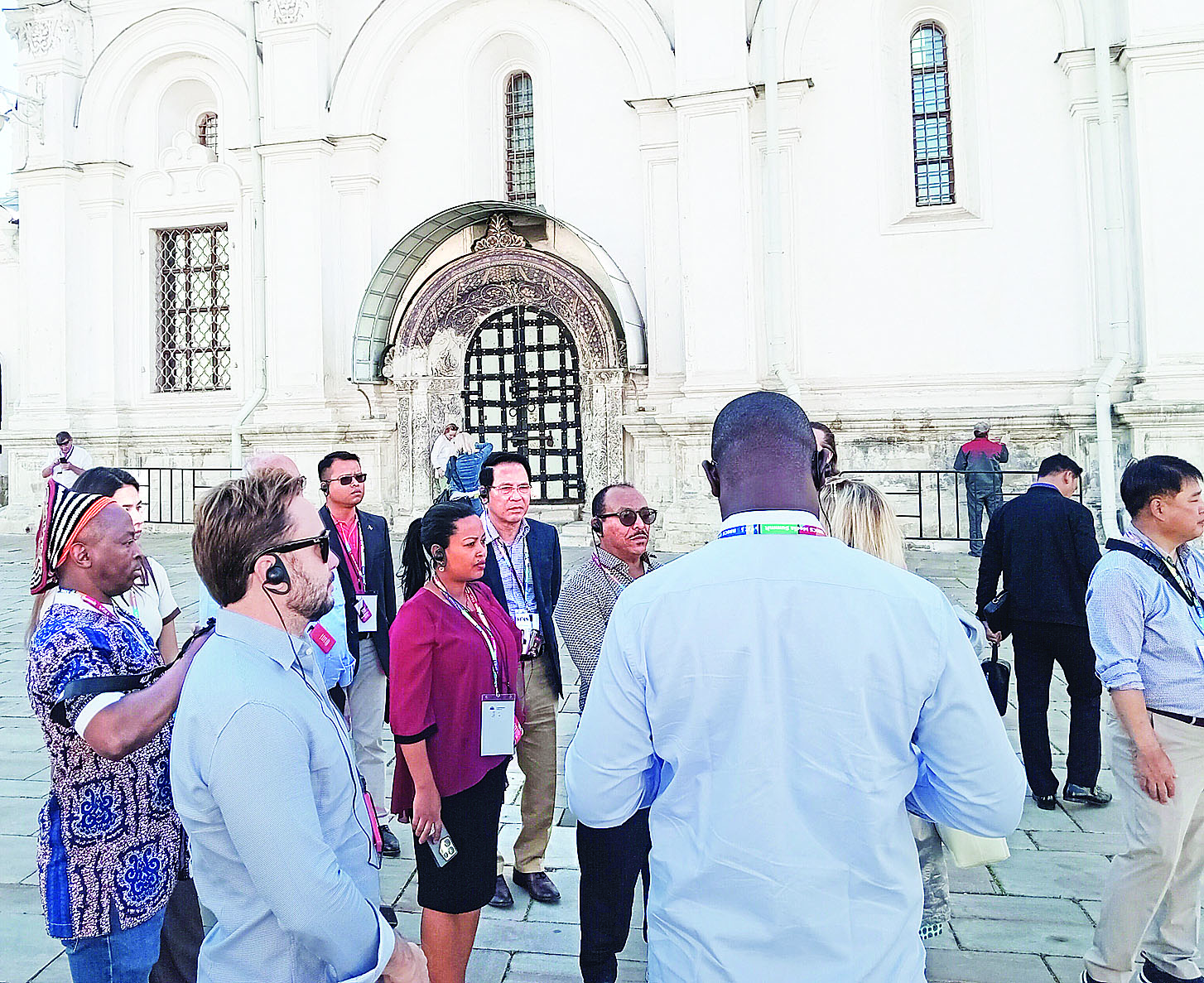 ပြန်ကြားရေးဝန်ကြီးဌာန ပြည်ထောင်စုဝန်ကြီး ဦးမောင်မောင်အုန်း၊ ရုရှားနိုင်ငံဆိုင်ရာ မြန်မာသံအမတ်ကြီး ဦးသစ်လင်းအုန်းနှင့်အဖွဲ့သည် BRICS Media Summit သို့တက်ရောက်ရန် မော်စကိုမြို့၌ ရောက်ရှိနေကြသည့် မီဒီယာဆိုင်ရာကိုယ်စားလှယ်များနှင့်အတူ စက်တင်ဘာ ၁၆ ရက် နံနက်ပိုင်းတွင် မော်စကိုမြို့ရှိ အထင်ကရနေရာများဖြစ်သော ကရင်မလင်နန်းတော်နှင့် ရှေးဟောင်းပြတိုက်များ၊ အညတရသူရဲကောင်းတစ်ဦး၏ ဂူဗိမာန်၊ ရင်ပြင်နီ၊ ဗာစီလီး ဘလာရမ်း နီရီဘုရားကျောင်း၊ ဘာသာရေးဆိုင်ရာ အဓိကဘုရားကျောင်းနေရာများသို့ သွားရောက်ပြီး ကြည့်ရှုလေ့လာကြသည်။