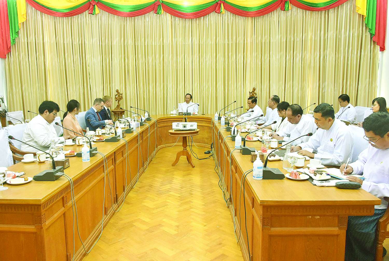 ကျန်းမာရေးဝန်ကြီးဌာန ပြည်ထောင်စုဝန်ကြီး ဒေါက်တာသက်ခိုင်ဝင်းအား ရန်ကုန်မြို့အခြေစိုက် မြန်မာနိုင်ငံဆိုင်ရာ ရုရှားကုန်သွယ်မှုကိုယ်စားလှယ်ရုံး၏ အကြီးအကဲ Mr. Vladimir Kazadaev ဦးဆောင်သောကိုယ်စားလှယ်အဖွဲ့သည် ယနေ့နံနက်ပိုင်းတွင် ကျန်းမာရေးဝန်ကြီးဌာန အစည်းအဝေးခန်းမ၌ လာရောက်တွေ့ဆုံသည်။