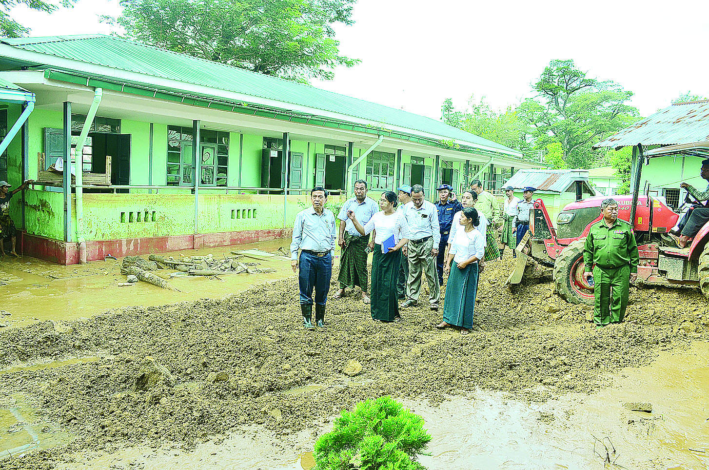 ထို့နောက် နေပြည်တော်ကောင်စီဥက္ကဋ္ဌနှင့်အဖွဲ့သည် ဇေယျာသီရိမြို့နယ် ပင်လောင်းလမ်းနှင့် ရန်ကုန် - မန္တလေး ပြည်ထောင်စုလမ်းမကြီးတွင် ရေလွှမ်းမိုးမှုကြောင့် တင်ကျန်ခဲ့သော နုန်းမြေများဖယ်ရှားခြင်းနှင့် လမ်းဘေးရေမြောင်းများ ရေစီးရေလာကောင်းမွန်စေရေး စက်ယန္တရားများနှင့် ရှင်းလင်းဆောင်ရွက်နေမှုကို ကြည့်ရှုစစ်ဆေးပြီး တာဝန်ရှိသူများအား လိုအပ်သည်များမှာကြားခဲ့ကြောင်း သိရသည်။