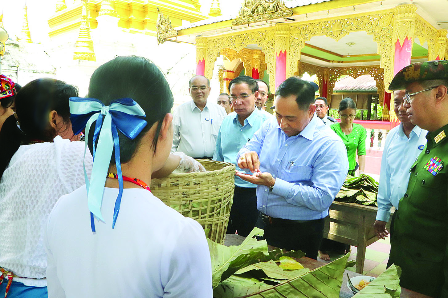 ဦးစွာ ပြည်ထောင်စုဝန်ကြီးသည် ပဲခူးတိုင်းဒေသကြီးအစိုးရအဖွဲ့ ဝန်ကြီးချုပ် ဦးမျိုးဆွေဝင်း၊ တောင်ပိုင်းတိုင်းစစ်ဌာနချုပ် တိုင်းမှူး ဗိုလ်ချုပ်ကြည်သိုက်တို့နှင့်အတူ ရေတာရှည်မြို့နယ် ပိတောက်စမ်းကျေးရွာ၌ ရေပြန်လည်ကျဆင်းသွားသည့် အခြေခံပညာမူလတန်းလွန်ကျောင်း၌ တပ်မတော်သားများ၊ ရဲတပ်ဖွဲ့ဝင်များ၊ မီးသတ်တပ်ဖွဲ့ဝင်များ၊ ဒေသခံပြည်သူများ စုပေါင်းအားဖြင့် သန့်ရှင်းရေးပြုလုပ်နေမှုကို သွားရောက်ကြည့်ရှုအားပေးခဲ့ပြီး စာသင်ကျောင်းများ ရေပြန်လည်ကျဆင်းပါက ပြန်လည်ဖွင့်လှစ်နိုင်ရေး၊ ကျောင်းပိတ်ရက်များတွင် ပြန်လည်အစားထိုးသင်ကြားနိုင်ရေးနှင့် ကျောင်းသုံးပရိဘောဂပျက်စီးမှုများ ပြင်ဆင်ဆောင်ရွက်ပေးရန် တာဝန်ရှိသူများအား မှာကြားပြီး ကျောင်းအုပ်ဆရာမကြီးနှင့် သန့်ရှင်းရေးပြုလုပ်နေသည့်တပ်ဖွဲ့ဝင်များအား ဂုဏ်ပြုငွေများပေးအပ်သည်။