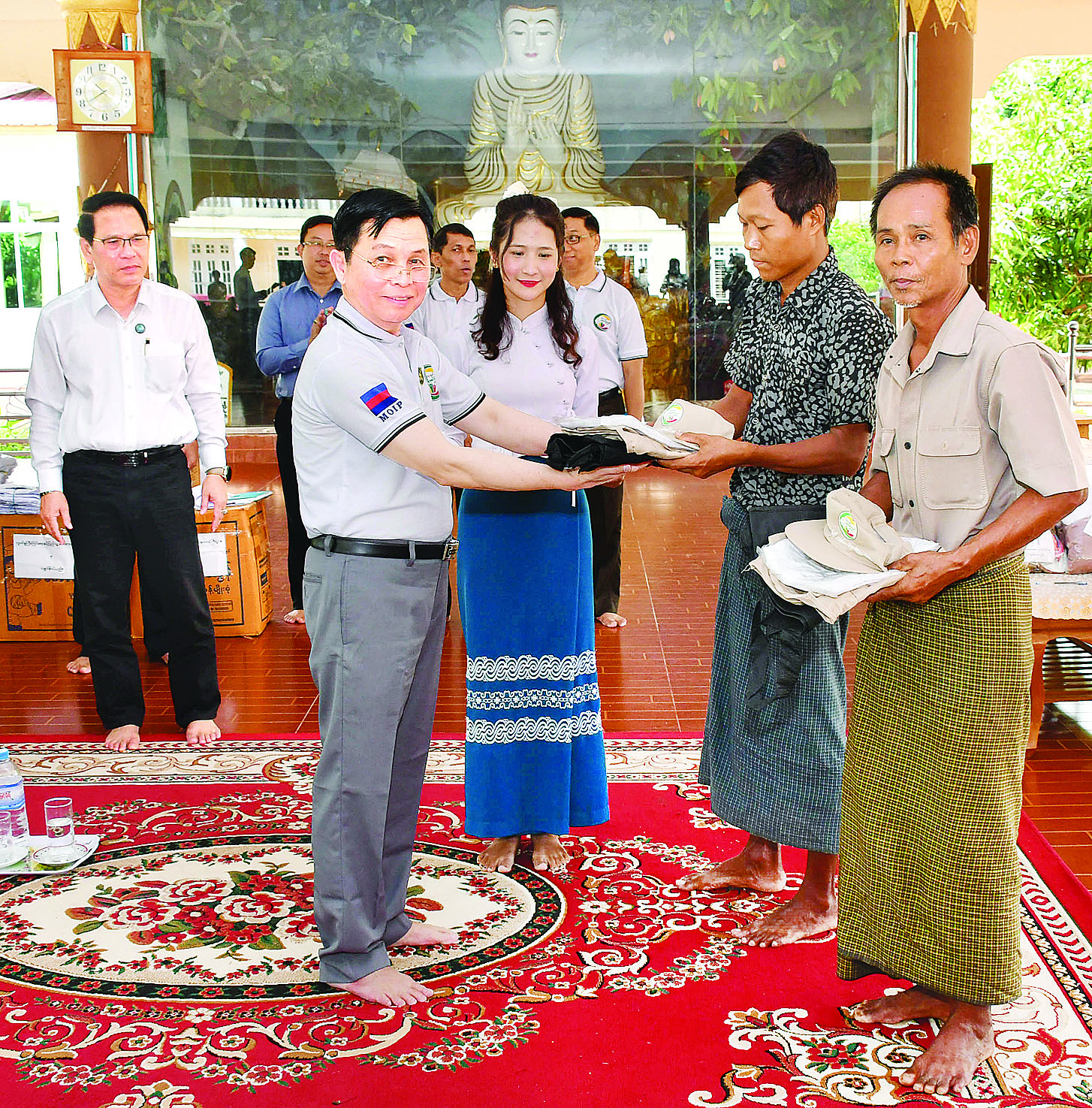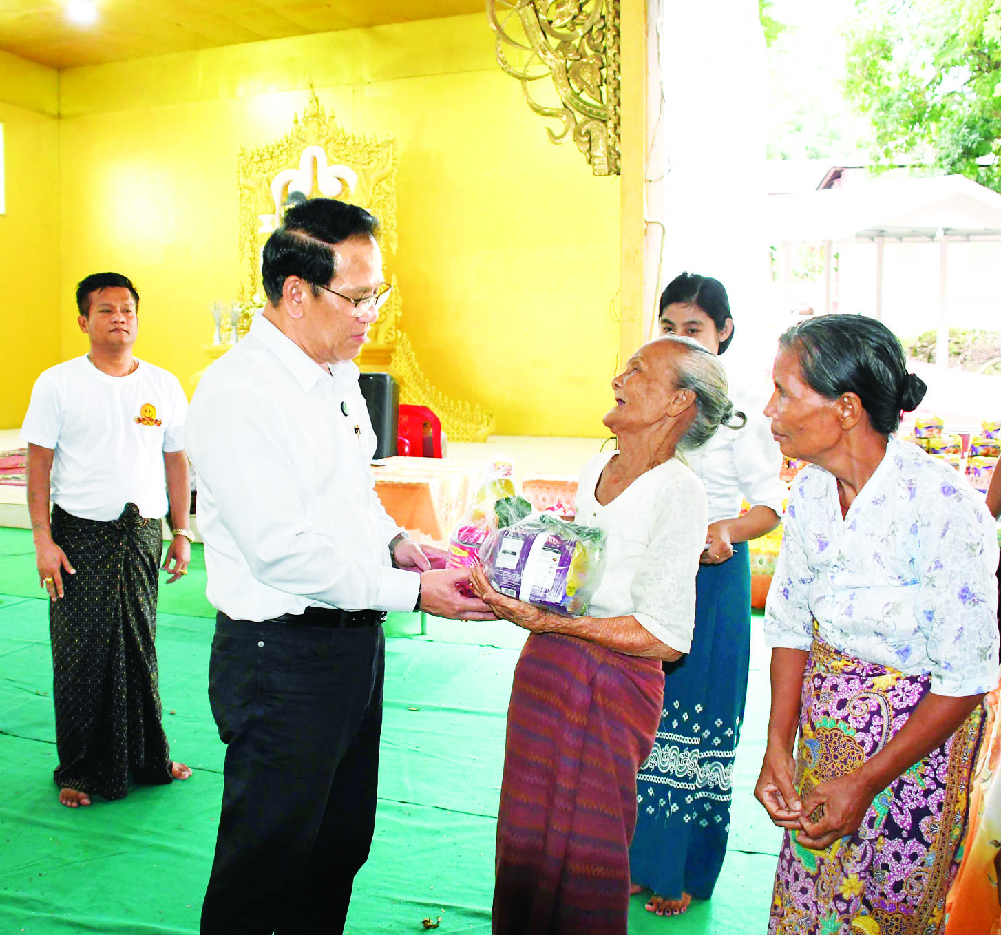 ယင်းနောက် ပြည်ထောင်စုဝန်ကြီး၊ တာဝန်ရှိသူများနှင့် အနုပညာရှင်များက ရေဘေးသင့်ပြည်သူများအတွက် ထောက်ပံ့ပစ္စည်းများ ပေးအပ်ကြ သည်။