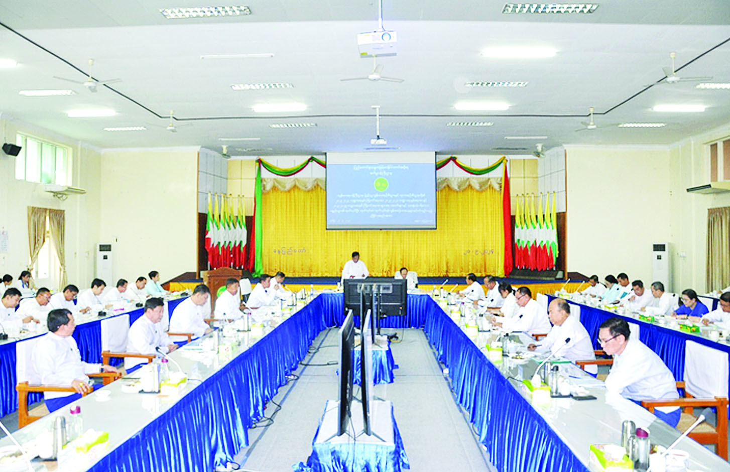 ကျန်းမာရေးဝန်ကြီးဌာနမှ စက်မှုဝန်ကြီးဌာနသို့ မှာယူထားသည့် ဆေးဝါးများ၊ ဆေးရုံသုံးပစ္စည်းများ၊ ပရိဘောဂများ ထုတ်လုပ်မှုအခြေအနေများနှင့် စပ်လျဉ်းသည့် ညှိနှိုင်းအစည်းအဝေးကို ယနေ့နံနက်ပိုင်းတွင် စက်မှုဝန်ကြီးဌာန အစည်းအဝေးခန်းမ၌ ကျင်းပသည်။