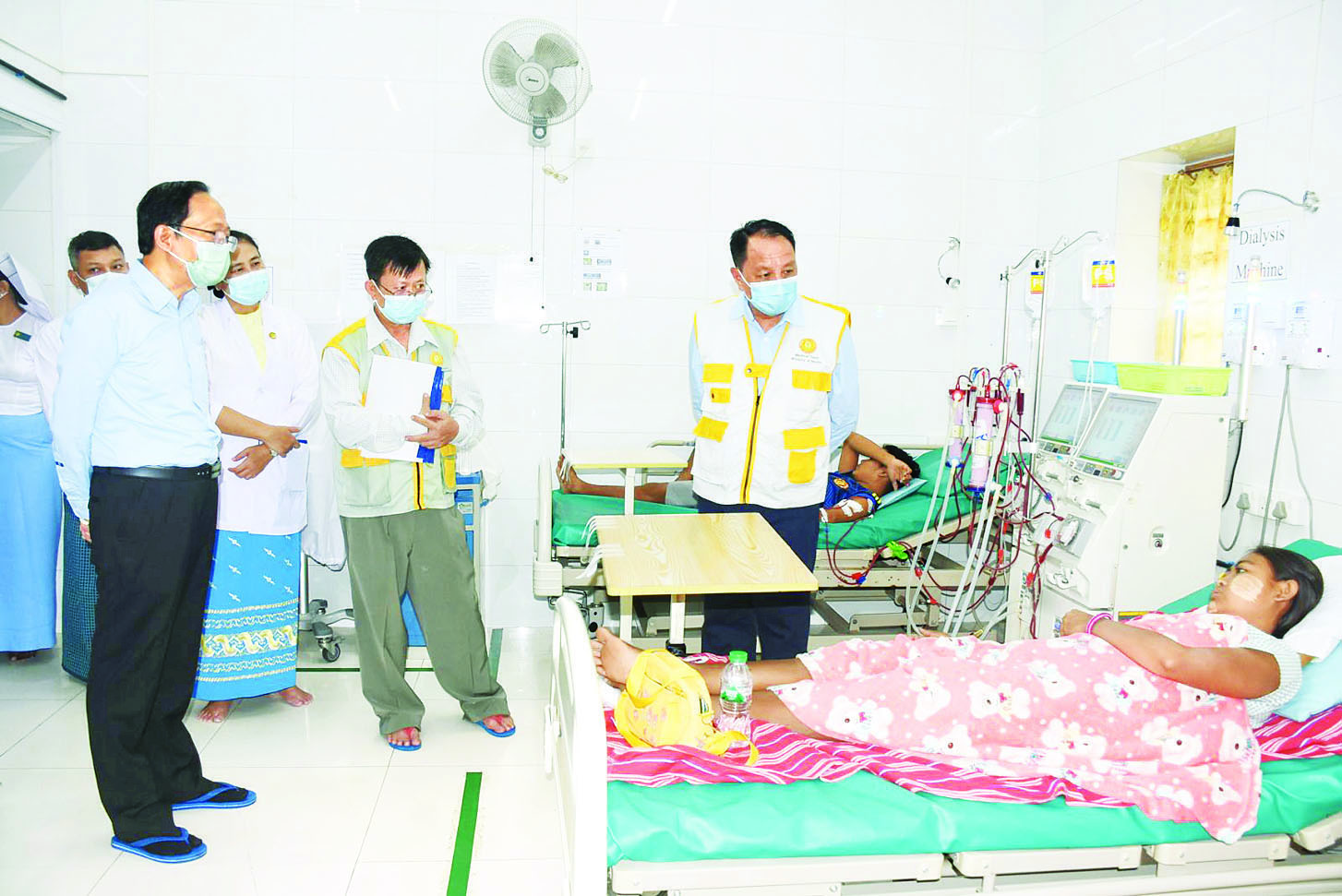 ကျန်းမာရေးဝန်ကြီးဌာန ပြည်ထောင်စုဝန်ကြီး ဒေါက်တာသက်ခိုင်ဝင်းသည် တာဝန်ရှိသူများနှင့်အတူ ယနေ့မွန်းလွဲပိုင်းတွင် ပြည်သူ့ဆေးရုံ တောင်ငူမြို့သို့ရောက်ရှိပြီး အရေးပေါ်ဆေးကုသမှုဌာန၊ အထူးကုပြင်ပလူနာဌာန၊ ဓာတ်ခွဲခန်း၊ ဓာတ်မှန်ခန်း၊ ကျေက်ကပ်သွေးသန့်စင်ခန်းနှင့် ခွဲစိတ်ခန်းများကို သဘာဝဘေးအန္တရာယ်ကျရောက်လာပါက ပျက်စီးဆုံးရှုံးမှုမရှိစေရေး ကြိုတင်ပြင်ဆင်ဆောင်ရွက်ထားရှိမှုကို လှည့်လည်ကြည့်ရှုစစ်ဆေးကာ လိုအပ်သည်များ ပံ့ပိုးဖြည့်ဆည်းပေးသည်။