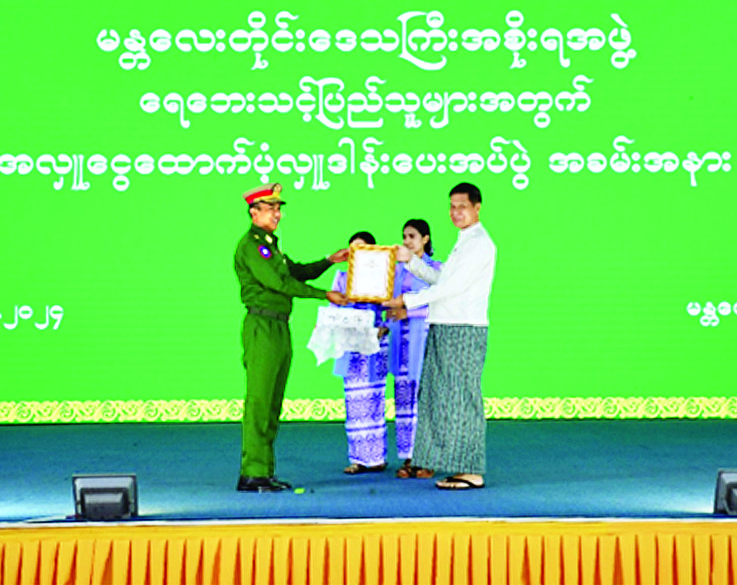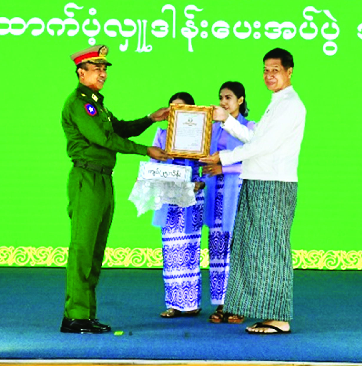 အလားတူ ရေဘေးသင့်ပြည်သူများအတွက် အလှူငွေများ ပေးအပ်လှူဒါန်းပွဲကို ယနေ့မွန်းလွဲပိုင်းတွင် မန္တလေးမြို့၊ မြို့တော်ခန်းမ၌ ပြုလုပ်ရာ မန္တလေးတိုင်းဒေသကြီး ဝန်ကြီးချုပ် ဦးမျိုးအောင်၊ အလယ်ပိုင်းတိုင်းစစ်ဌာနချုပ် တိုင်းမှူး ဗိုလ်မှူးချုပ်ကျော်ကိုထိုက်၊ တိုင်းဒေသကြီးအစိုးရအဖွဲ့ဝင် ဝန်ကြီးများ၊ ဌာနဆိုင်ရာ တာဝန်ရှိသူများ၊ ဖိတ်ကြားထားသူများနှင့် အလှူရှင်များ တက်ရောက်ကြသည်။