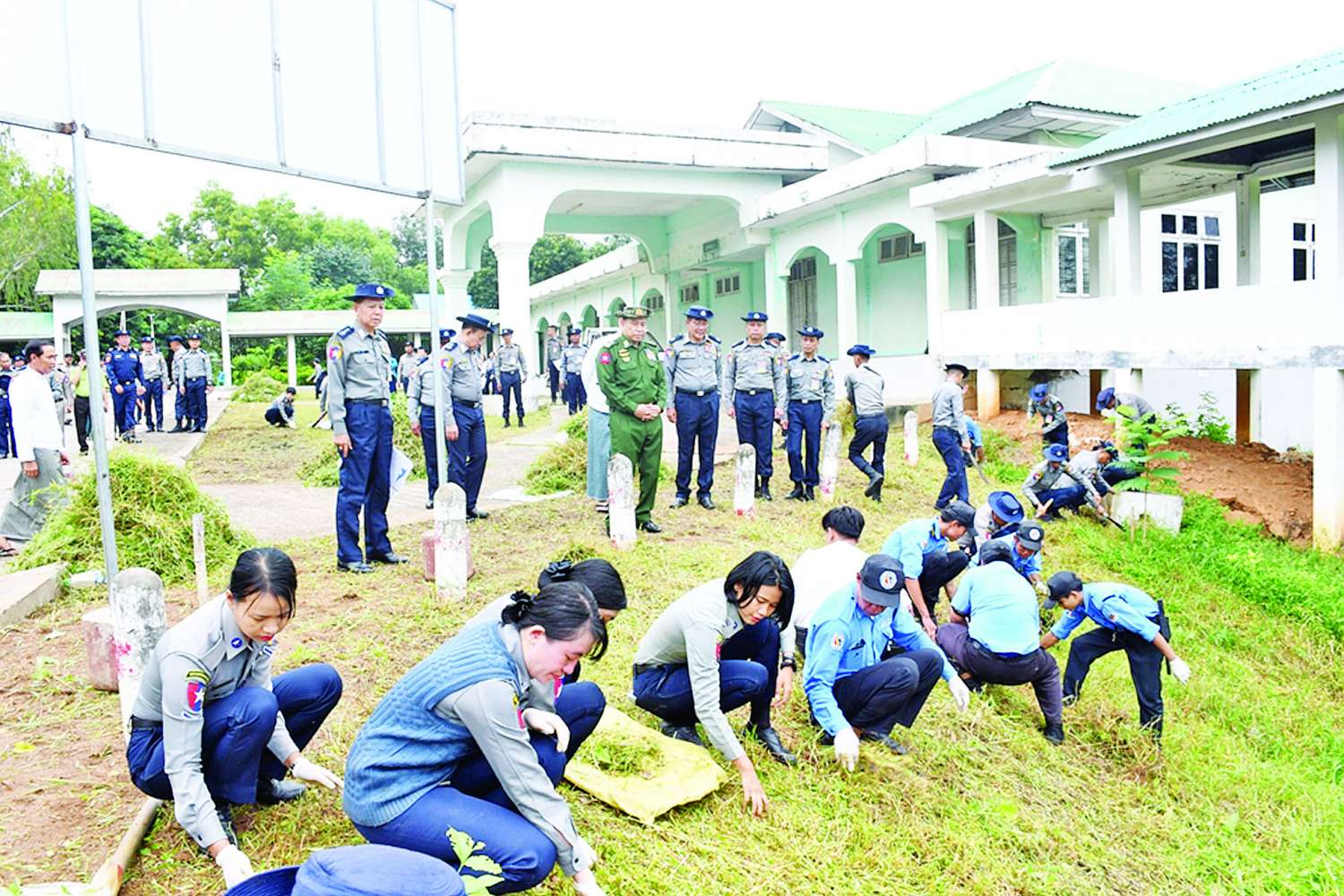 မြန်မာနိုင်ငံရဲတပ်ဖွဲ့ဌာနချုပ်ရှိ ဌာနကြီးများနှင့် တပ်ဖွဲ့များမှတပ်ဖွဲ့ဝင်နှင့် စာရေးဝန်ထမ်းနှင့်အတူ ဆေးရုံကြီးရှိ ဆရာဝန်၊ သူနာပြုများနှင့် ကျန်းမာရေးဝန်ထမ်းများက ပျော်ရွှင်စွာဖြင့် အတူတကွ စုပေါင်းသန့်ရှင်းရေး လုပ်အားပေးဆောင်ရွက်ခဲ့ကြကြောင်း သတင်းရရှိသည်။