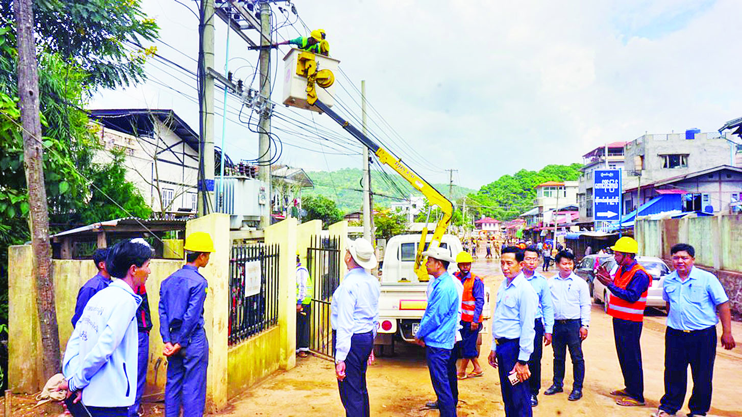 လျှပ်စစ်စွမ်းအားဝန်ကြီးဌာန ဒုတိယဝန်ကြီး ဦးအေးကျော်သည် တာဝန်ရှိသူများနှင့်အတူ ယမန်နေ့ နံနက်ပိုင်းတွင် နေပြည်တော်ကောင်စီနယ်မြေ တပ်ကုန်းမြို့၌ ရေတိုက်စားမှုကြောင့် ယိုင်လဲပျက်စီးသွားခဲ့သည့် ဓာတ်အားလိုင်းများ ပြန်လည်ပြုပြင်ခြင်း လုပ်ငန်းဆောင်ရွက်နေမှုနှင့် ရှမ်းပြည်နယ် (တောင်ပိုင်း) ကလောမြို့နယ်၌ ရေကြီးရေလျှံမှုများကြောင့် ဓာတ်အားခွဲရုံ၊ ဓာတ်အားလိုင်းများ ပျက်စီးဆုံးရှုံးမှုနှင့်ပြည်သူများ လျှပ်စစ်အန္တရာယ်ကင်းရှင်းစေရေး ယာယီဓာတ်အား ဖြတ်တောက် ထားရှိမှုတို့ကို ကြည့်ရှုစစ်ဆေးသည်။