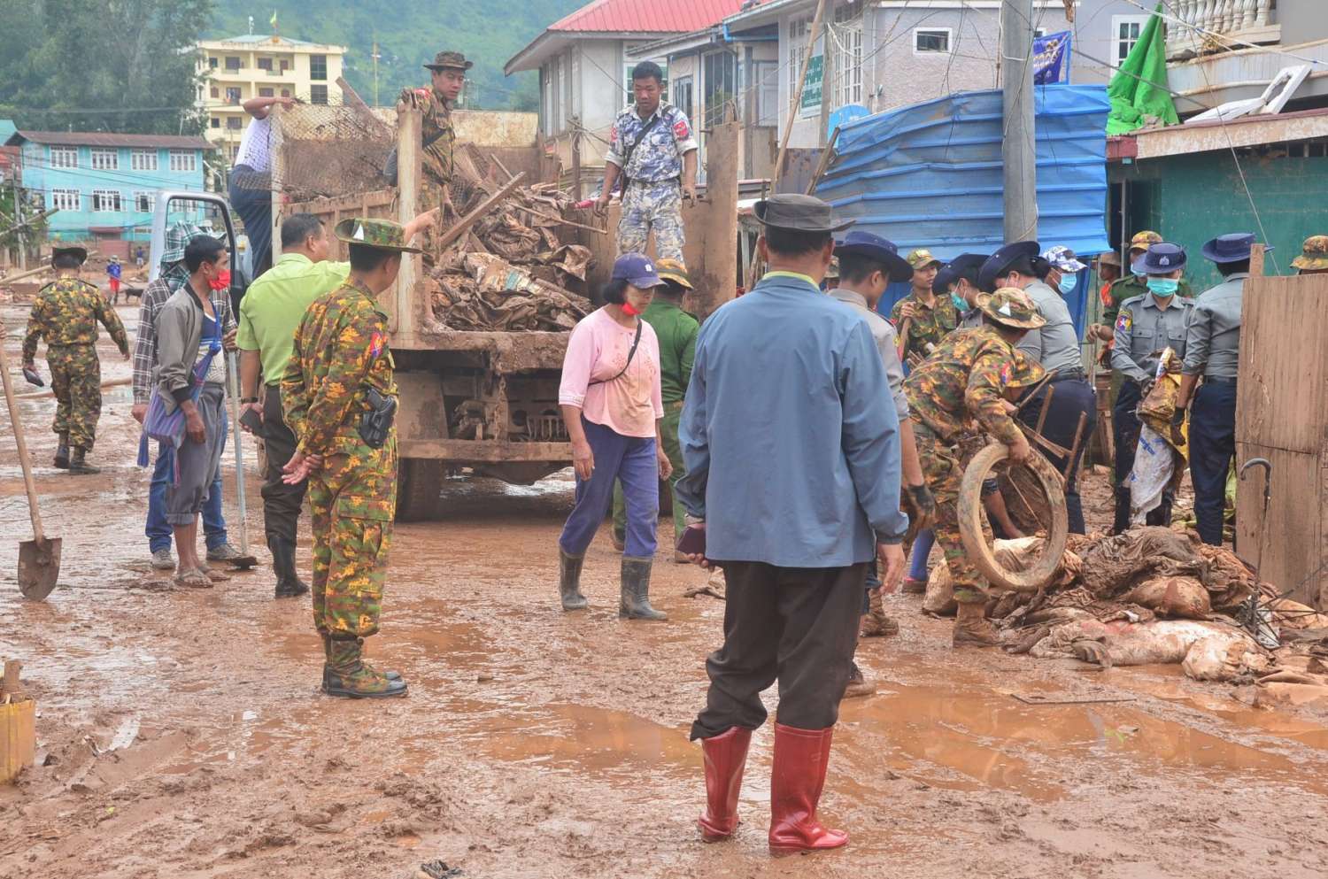 ပြန်လည်ထူထောင်ရေးလုပ်ငန်းများ ဆောင်ရွက်ရာတွင် ကလောမြို့ ပျံကျစျေး အမြန်ဆုံးဖွင့်လှစ်နိုင်ရေးနှင့် ကလောချောင်း ရေစီးရေလာကောင်းမွန်စေရေးလုပ်ငန်းများအတွက် ကလောတပ်နယ်မှူး၊ ခရိုင်/မြို့နယ်စီမံအုပ်ချုပ်ရေးအဖွဲ့ဥက္ကဋ္ဌနှင့် အဖွဲ့ဝင်များ ဦးဆောင်၍ မြန်မာ့တပ်မတော်သားများ၊ မြန်မာနိုင်ငံရဲတပ်ဖွဲ့ဝင်များ၊ မီးသတ်တပ်ဖွဲ့ဝင်၊ လူမှုရေးအသင်းအဖွဲ့များ၊ ရပ်ကွက်/ကျေးရွာနေ ဒေသခံပြည်သူများ ပူးပေါင်း၍ ပျံကျစျေးဖွင့်လှစ်မည့်နေရာတို့တွင် ရွှံ့နွံအမှိုက်များကို စက်ယန္တရားများနှင့် စုပေါင်းလူအင်အားတို့ဖြင့် စုပေါင်းသန့်ရှင်းရေးဆောင်ရွက်ခြင်းနှင့် ကလောချောင်း ရေစီးရေလာကောင်းမွန်စေရေးအတွက် ချောင်းအကျယ်အဝန်းတိုင်းတာပြီး ဆက်လက်ဆောင်ရွက်ရမည့်အခြေအနေများကို ကလောတပ်နယ်မှူး၊ ခရိုင်/မြို့နယ်စီမံအုပ်ချုပ်ရေးအဖွဲ့ဥက္ကဋ္ဌနှင့် တာဝန်ရှိသူများက ကွင်းဆင်းကြည့်ရှု စစ်ဆေးခဲ့ကြောင်း သိရှိရသည်။