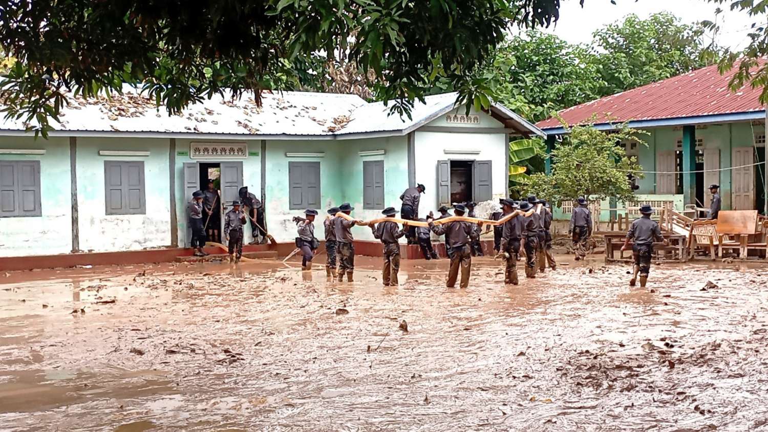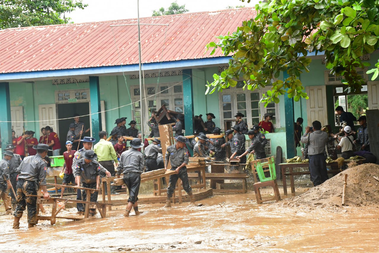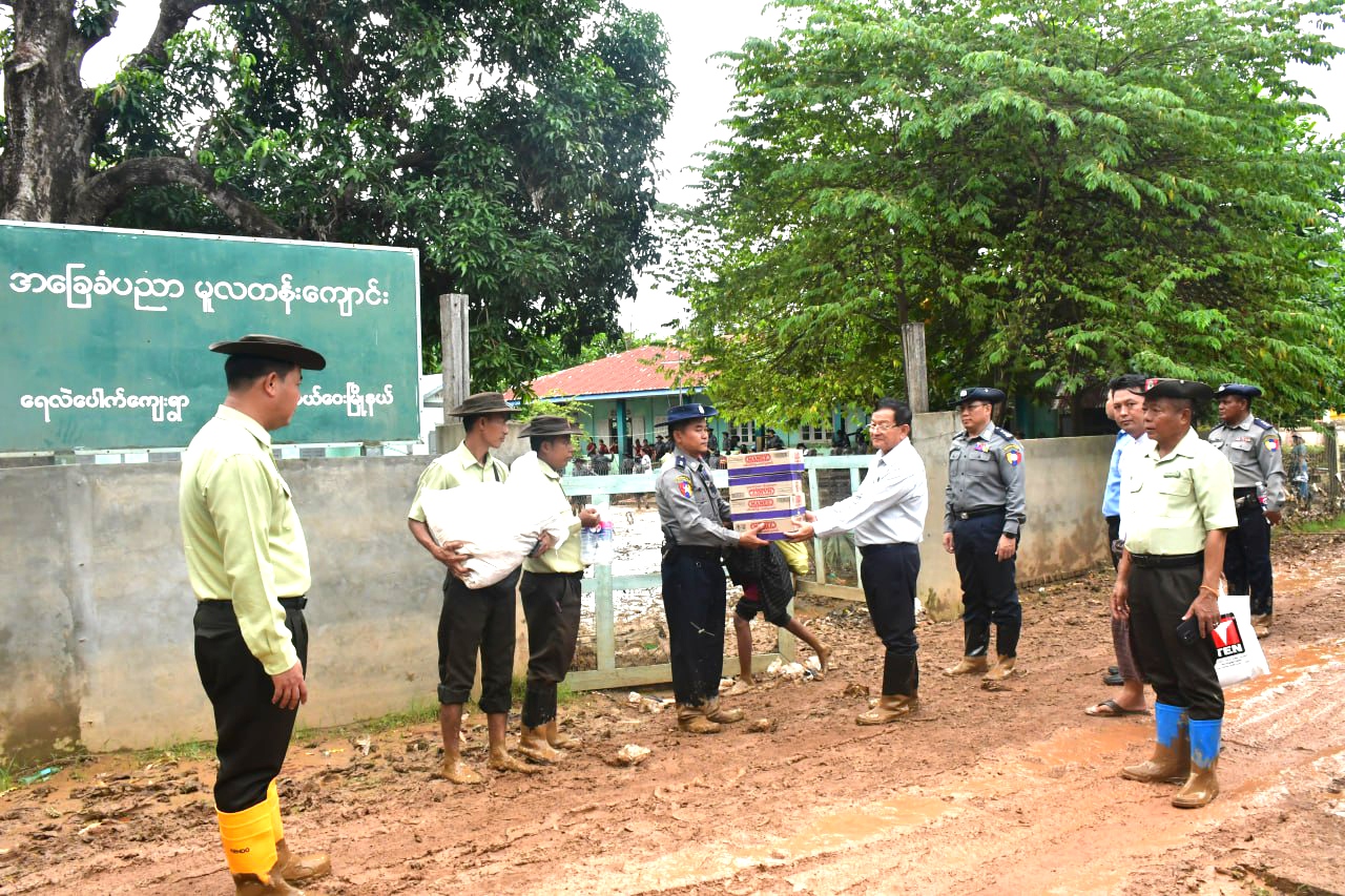 ရှေးဦးစွာ နေပြည်တော်ကောင်စီဝင်ဦးမြင့်စိုးသည် လယ်ဝေးမြို့နယ်၊ ရေလဲပေါက်ကျေးရွာစာသင်ကျောင်းတွင် လယ်ဝေးခရိုင်စီမံအုပ်ချုပ်ရေးအဖွဲ့ဥက္ကဋ္ဌ ဦးဇင်မင်းကို ဦးဆောင်၍ ဒက္ခိဏသီရိမြို့နယ်နှင့် လယ်ဝေးမြို့နယ်တို့မှ ဝန်ထမ်းများ၊ ရဲတပ်သားသစ်သင်တန်းမှ သင်တန်းသားများစုပေါင်း၍ ရေကြီးနစ်မြုပ်ခဲ့သည့် ကျောင်းဝန်း၊ စာသင်ခန်းများနှင့် စာသင်ခုံများ၊ ပရိဘောဂပစ္စည်းများတွင် တင်ကျန်ခဲ့သည့် နုန်းများနှင့် အမှိုက်များအား သန့်ရှင်းရေးဆောင်ရွက်နေမှုအား ကြည့်ရှုအားပေးကာ ခေါက်ဆွဲခြောက်၊ မုန့်နှင့် ရေသန့်များ ပေးအပ်ခဲ့သည်။ ထို့နောက် နေပြည်တော်ကောင်စီဝင်က တာဝန်ရှိသူများအား ကျောင်းသား၊ ကျောင်းသူလေးများ ပညာသင်ကြားရေး နှောင့်နှေးမှုမရှိစေရေး အလေးထားဆောင်ရွက်ရန် မှာကြားခဲ့သည်။ ထို့နောက် ရေလဲပေါက်ကျေးရွာဘုန်းတော်ကြီးကျောင်းဆရာတော်အား ဖူးမျှော်ကြည်ညို၍ နဝကမ္မအလှူငွေ၊ ဝါဆိုသင်္ကန်းနှင့် လှူဖွယ်ပစ္စည်းများ ဆက်ကပ်လှူဒါန်းသည်။