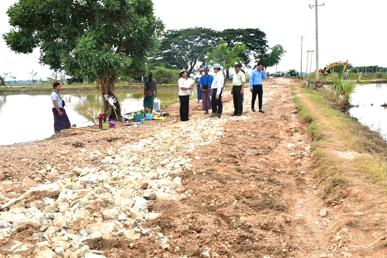 ဆက်လက်၍ နေပြည်တော်ကောင်စီဝင်ဦးမြင့်စိုးသည် လယ်ဝေးမြို့နယ်စီမံအုပ်ချုပ်ရေးအဖွဲ့ဥက္ကဋ္ဌ ဦးမြင့်ဆောင်လိုက်ပါလျက် မြို့ရှောင်လမ်းမှ ကွမ်းခြံကျေးရွာသို့ သွားရောက်သည့်လမ်းအား မြို့နယ်ကျေးလက်လမ်းဖွံ့ဖြိုးရေးဦးစီးဌာနမှ ပြုပြင်ဆောင်ရွက်နေမှုအား ကြည့်ရှုစစ်ဆေးရာ တာဝန်ခံအင်ဂျင်နီယာ ဒေါ်ထက်ခိုင်စိုးက လုပ်ငန်းဆောင်ရွက်နေမှုနှင့် ပြီးစီးမှုများအား ရှင်းလင်းတင်ပြသည်။ အဆိုပါ မြို့ရှောင်လမ်းမှ ကွမ်းခြံကျေးရွာသို့ ဆက်သွယ်ထားသည့်လမ်းမှာ အရှည် ၂ မိုင်ရှိပြီး ယနေ့အထိ ၀.၄ မိုင် ပြုပြင်ဆောင်ရွက်ပြီးဖြစ်ကာ အမြန်ဆုံးပြီးစီးနိုင်ရေး ဆောင်ရွက်လျက်ရှိကြောင်း သိရသည်။