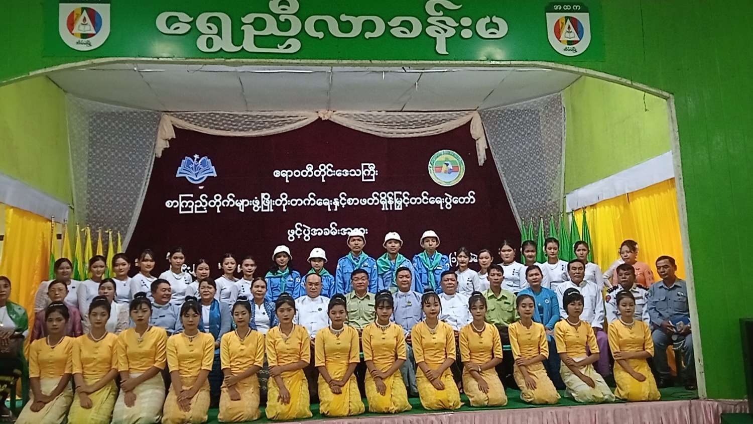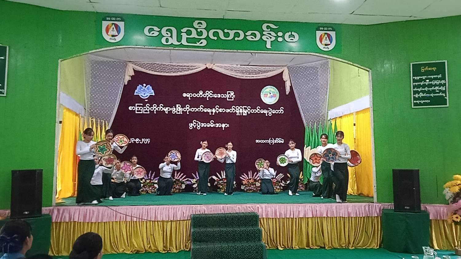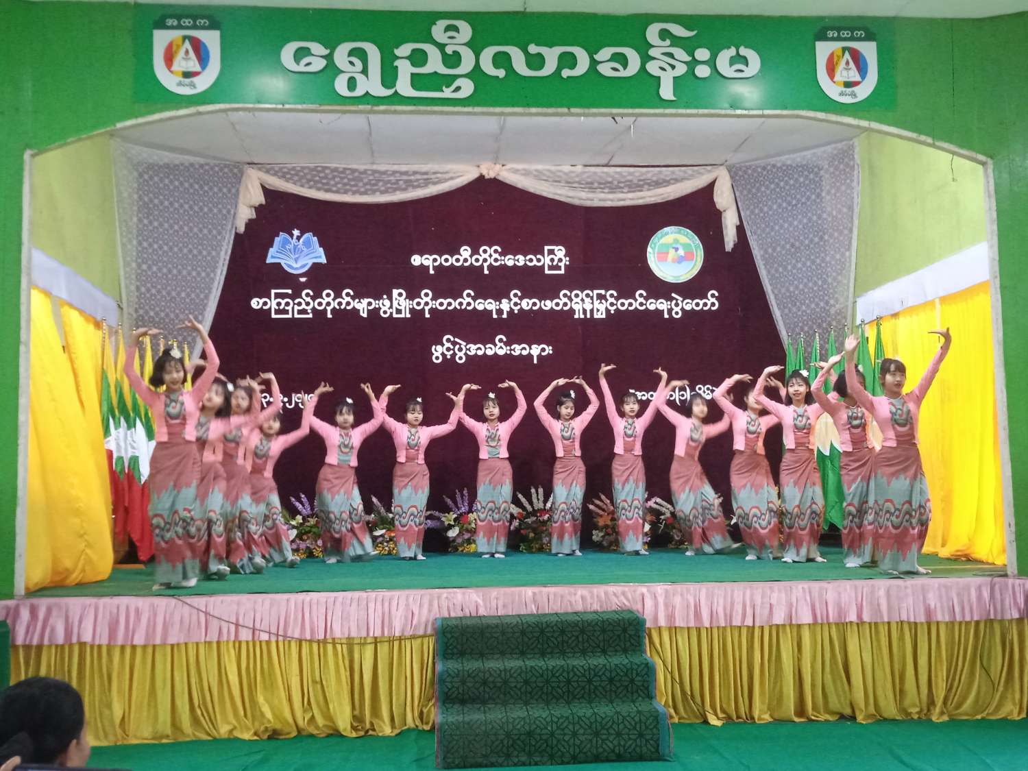 ဆက်လက်ပြီးအခြေခံပညာကျောင်းများမှ ကျောင်းသား ကျောင်းသူများက တေးသီချင်းများ၊ သရုပ်ဖော်အကများဖြင့် ကပြသီဆိုဖျော်ဖြေခဲ့ကြရာ မြောင်းမြခရိုင် စီမံအုပ်ချုပ်ရေးအဖွဲ့ဥက္ကဋ္ဌ ဦးစန်းဌေးက ဆုများပေးအပ်ခဲ့ကာ အခမ်းအနားသို့ တက်ရောက်လာသူများနှင့်အမှတ်တရ စုပေါင်းမှတ်တမ်းတင် ဓာတ်ပုံရိုက်ကူးကြသည်။