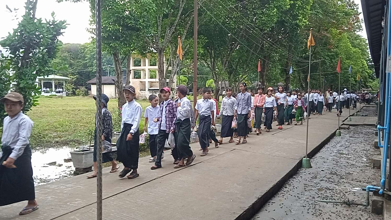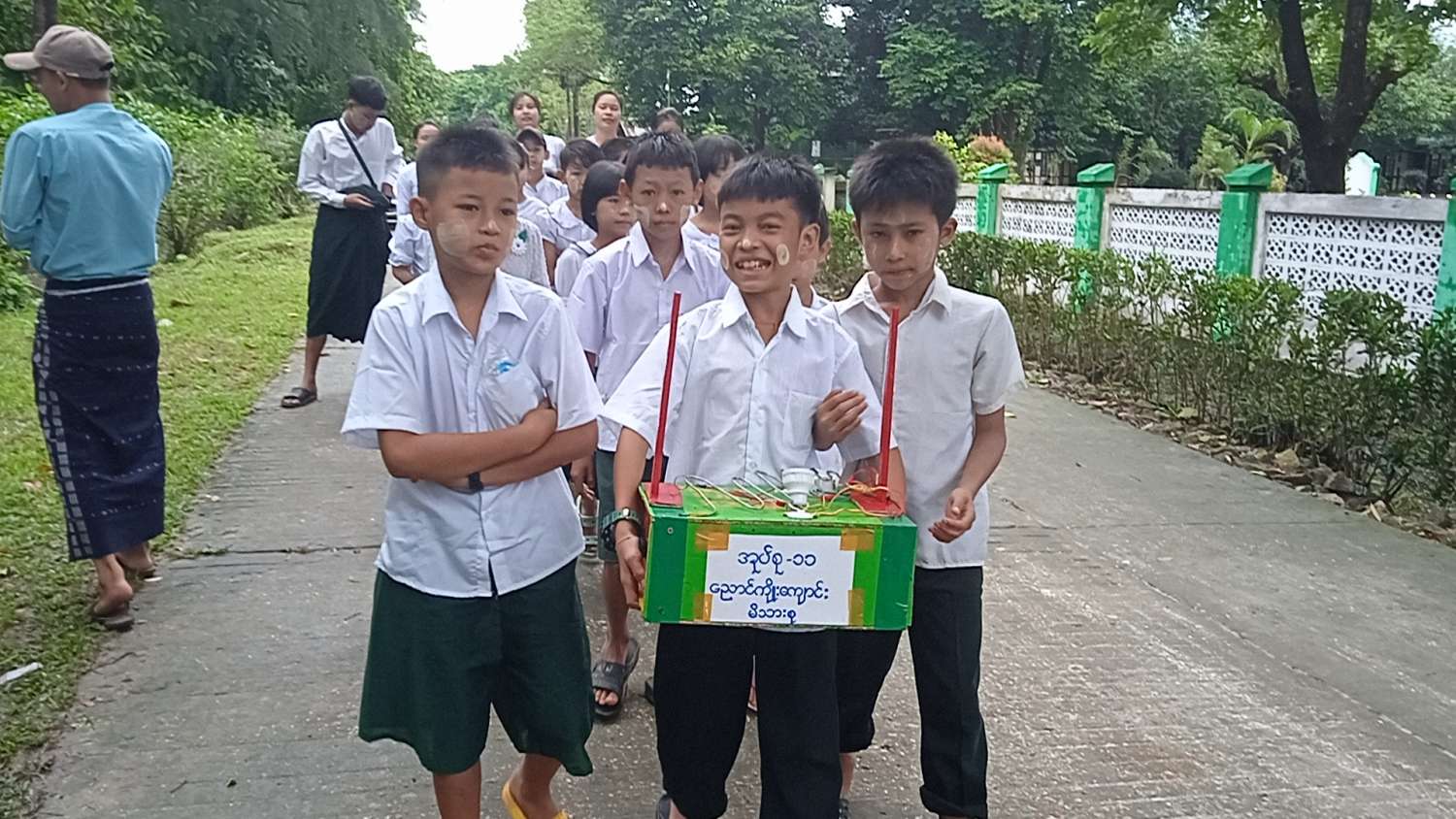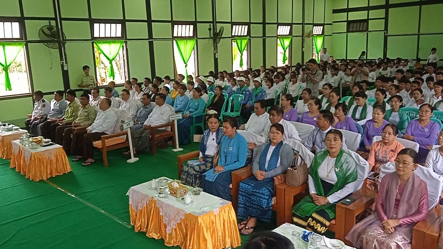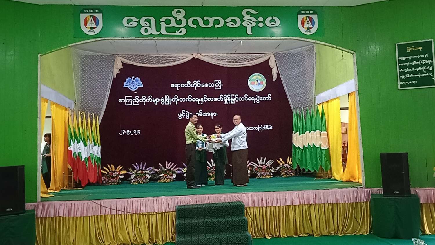 ဆက်လက်ပြီးအခြေခံပညာကျောင်းများမှ ကျောင်းသား ကျောင်းသူများက တေးသီချင်းများ၊ သရုပ်ဖော်အကများဖြင့် ကပြသီဆိုဖျော်ဖြေခဲ့ကြရာ မြောင်းမြခရိုင် စီမံအုပ်ချုပ်ရေးအဖွဲ့ဥက္ကဋ္ဌ ဦးစန်းဌေးက ဆုများပေးအပ်ခဲ့ကာ အခမ်းအနားသို့ တက်ရောက်လာသူများနှင့်အမှတ်တရ စုပေါင်းမှတ်တမ်းတင် ဓာတ်ပုံရိုက်ကူးကြသည်။