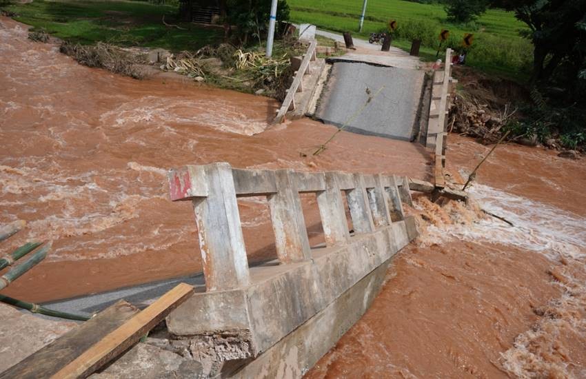 ရှမ်းပြည်နယ်(အရှေ့ပိုင်း)၊ ကျိုင်းတုံမြို့တွင် စက်တင်ဘာ ၁၀ ရက် နံနက် ၂ နာရီမှစ၍ မိုးသည်းထန်စွာရွာသွန်းမှုကြောင့် နမ့်လပ်ချောင်းတောင်ကျရေများ မြင့်တက်လာပြီး ကျိုင်းတုံ-လွိုင်မွေကားလမ်းပေါ်ရှိ အရှည် ၆၀ ပေ၊ အကျယ် ၁၉ ပေရှိ နမ့်လပ်ချောင်းကူးသံကူကွန်ကရစ်တံတားသည် စက်တင်ဘာလ ၁၀ ရက် နံနက် ၇ နာရီခွဲခန့်တွင် ပြိုကျပျက်စီးခဲ့ပြီး လူနှင့်တိရစ္ဆာန်များ ထိခိုက်ပျက်စီးမှုမရှိဘဲ မော်တော်ယာဉ်များ ဖြတ်သန်းသွားလာနိုင်မှုမရှိခဲ့ကြောင်း သိရှိရသည်။