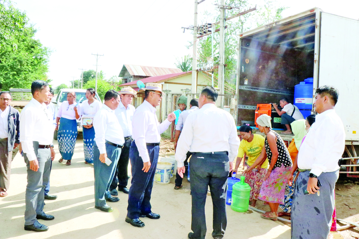 ဆက်လက်၍ အလယ်ရွာကျေးရွာနှင့် ရှမ်းရွာကျေးရွာတို့ရှိ ရေဘေးသင့်ပြည်သူများအား သွားရောက်တွေ့ဆုံအားပေးရာ ပြည်ထောင်စုဝန်ကြီးက ရေကြီးနစ်မြုပ်ခဲ့သည့် မိုးစပါးနှင့် စိုက်ပျိုးသီးနှံများအတွက် ပြန်လည်စိုက်ပျိုးနိုင်ရေး သက်ဆိုင်ရာဌာနများနှင့် ပူးပေါင်းဆောင်ရွက်ပေးသွားမည်ဖြစ်ကြောင်း၊ သဘာဝဘေးကြောင့် ထိခိုက်ပျက်စီးခဲ့သည့် အသက်မွေးဝမ်းကျောင်းလုပ်ငန်းများကိုလည်း ပြန်လည်ထူထောင်ရေးလုပ်ငန်းများ အမြန်ဆုံး ဆောင်ရွက်ပေးသွားမည်ဖြစ်ကြောင်း၊ ကျေးရွာတောင်သူများအနေဖြင့် စိတ်တူကိုယ်တူ ဆန္ဒတူသူများစုပေါင်း၍ သမဝါယမအသင်းများဖွဲ့စည်းကာ ဒေသနှင့်ကိုက်ညီပြီး ဈေးကွက်ဝင်သည့် စိုက်ပျိုးရေး၊ မွေးမြူရေးနှင့် အခြားကုန်ထုတ်လုပ်ငန်းများ စုပေါင်းဆောင်ရွက်ကြရန်လိုအပ်ကြောင်း၊ မိမိတို့ဝန်ကြီးဌာနအနေဖြင့် လိုအပ်သည့်အရင်းအနှီးများ မတည်ဆောင်ရွက်ပေးမည်ဖြစ်ကြောင်းနှင့် ဒေသဖွံ့ဖြိုးရေးဆိုင်ရာများကို ဆွေးနွေးပြောကြား၍ ဒေသခံပြည်သူများ၏ တင်ပြမှုအပေါ် လိုအပ်သည်များ ညှိနှိုင်းပေါင်းစပ် ဆောင်ရွက်ပေးကာ အလယ်ရွာကျေးရွာရှိ အိမ်ထောင်စု ၁၀၀၊ ရှမ်းရွာကျေးရွာရှိ အိမ်ထောင်စု ၁၂၀ တို့တွက် အိမ်ထောင်စုတစ်စုလျှင် ဆန်နှင့်အဝတ်အထည်များ ထောက်ပံ့ပေးအပ်ကာ ပုဂ္ဂလိကစက်ရေတွင်းများ တွင်းဆေးတွင်းမှုတ်ဆောင်ရွက်နေမှုကို ကြည့်ရှုစစ်ဆေးသည်။