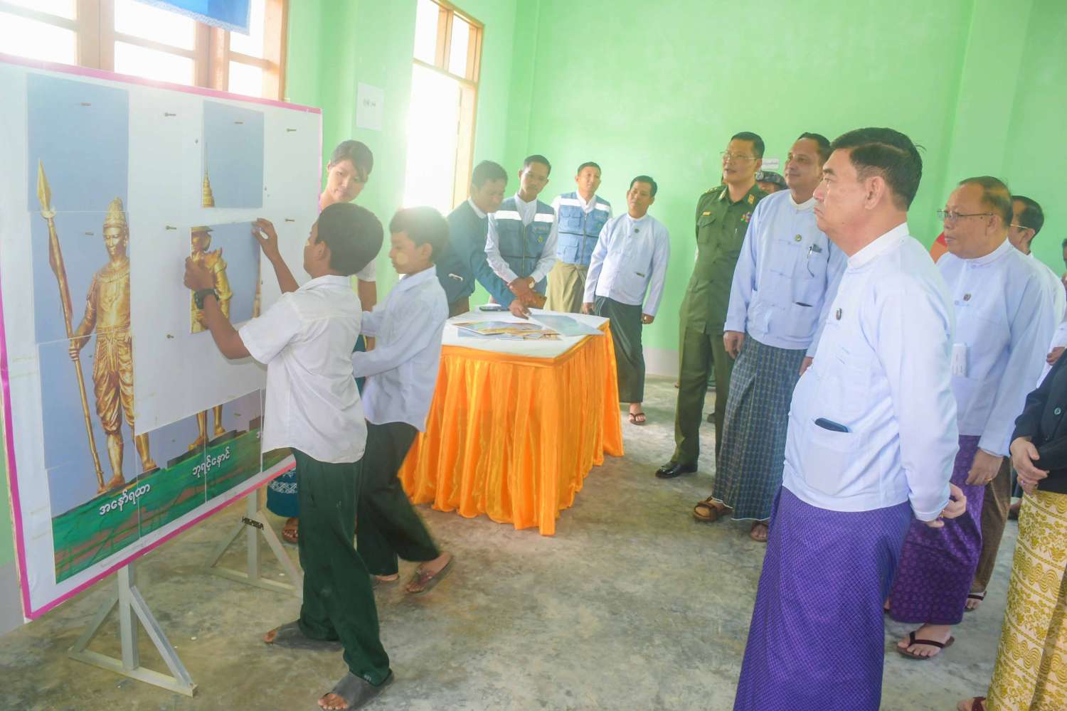 ထို့နောက် ပြည်နယ်ဝန်ကြီးချုပ်နှင့်အဖွဲ့သည် ကျောင်းခန်းမ၌ အထက်တန်းနှင့် အလယ်တန်းအဆင့် စာစီစာကုံးပြိုင်ပွဲတွင် ကျောင်းသား၊ ကျောင်းသူများ ဝင်ရောက်ယှဉ်ပြိုင်နေမှုကို လှည့်လည် ကြည့်ရှုအားပေးပြီး လိုအပ်သည်များကို တာဝန်ရှိသူများနှင့် ပေါင်းစပ်ညှိနှိုင်းပေးခဲ့သည်။