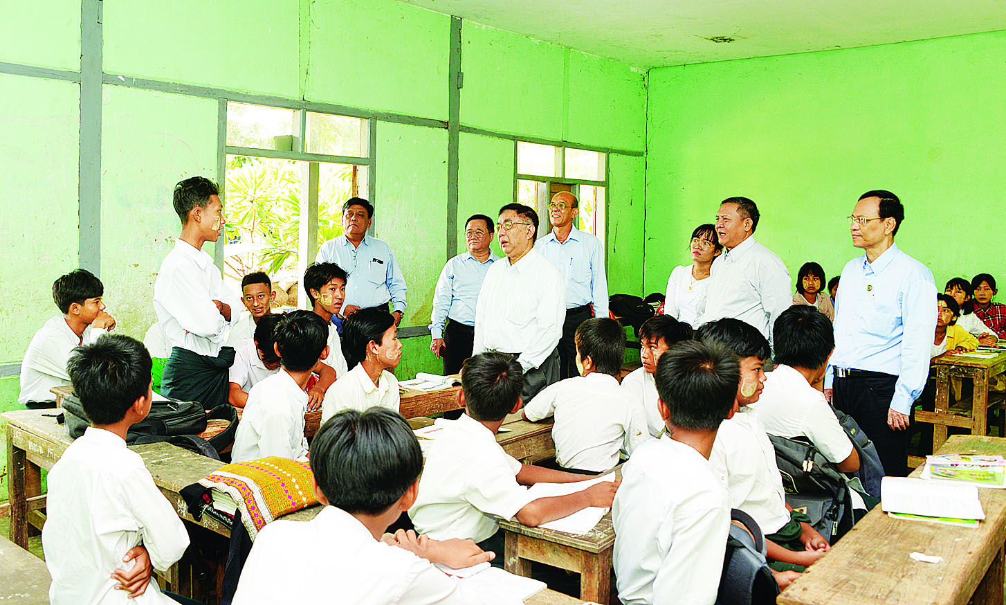 ယင်းနောက် အခြေခံပညာအလယ်တန်းကျောင်း(ခွဲ)(ပိန်းတော)၌ ပြိုကျပျက်စီးနေသော ကျောင်းအုတ်တံတိုင်းများ၊ ကျောင်းဆောင်များ၊ စာသင်ခုံများ၊ စားပွဲများ၊ Whiteboard များ ပျက်စီးနေမှု၊ ရေသန့်စက်၊ ရေမော်တာနှင့် သန့်စင်ခန်းများတွင် နုန်းများဖုံးအုပ်နေမှုနှင့် ကျောင်းအတွင်း မီးလိုင်းပြတ်တောက်မှုအခြေအနေများကို လည်းကောင်း၊ အမှတ်(၁)အခြေခံပညာ အထက်တန်းကျောင်း၌ စာသင်ခန်းများတွင် ကျောင်းသား ကျောင်းသူများ ပညာသင်ကြားနေမှုအခြေအနေများကိုလည်းကောင်း လှည့်လည်ကြည့်ရှုစစ်ဆေးပြီး လိုအပ်သည်များ မှာကြားကာ လုပ်အားပေးဆောင်ရွက်နေသော ရဲတပ်ဖွဲ့ဝင်များအား ကျေးဇူးတင်စကား ပြောကြားကြောင်း သိရသည်။