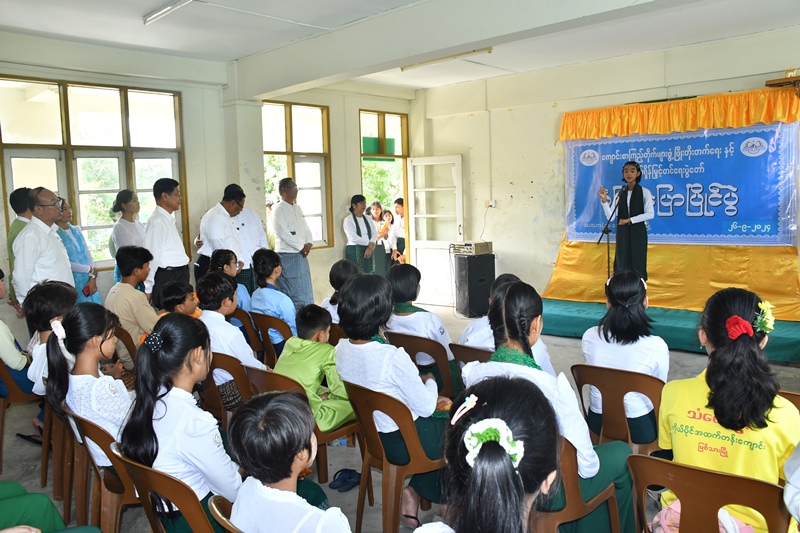 ၎င်းနောက် ကျောက်ဆည်မြို့ အမှတ်(၂) အခြေခံပညာအထက်တန်းကျောင်းမှ ကျောင်းသား၊ ကျောင်းသူများက “ပညာဘဏ်တိုက် စာကြည့်တိုက်သို့ သွားကြစို့” သီချင်းဖြင့် သီဆိုဖျော်ဖြေကာ တိုင်းဒေသကြီး ပြန်ကြားရေးနှင့်ပြည်သူ့ဆက်ဆံရေးဦးစီးဌာနက ကျောက်ဆည်မြို့ အမှတ် (၁) အခြေခံပညာအထက်တန်းကျောင်း၊ ကျောင်းစာကြည့်တိုက်အတွက် စာအုပ်များပေးအပ်လှူဒါန်းရာ ကျောင်းအုပ်ဆရာမကြီး ဒေါ်ညိုအေးကလက်ခံရယူသည်။