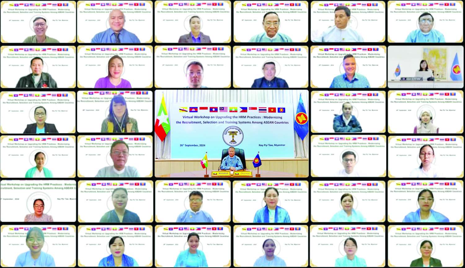 ပြည်ထောင်စုရာထူးဝန်အဖွဲ့၏ ဦးဆောင်မှု၊ အာဆီယံအတွင်းရေး မှူးချုပ်ရုံး၏ ပူးပေါင်းမှုဖြင့် အာဆီယံအဖွဲ့ဝင်နိုင်ငံများအကြား ဝန်ထမ်းစုဆောင်းရွေးချယ်ခြင်းနှင့် လေ့ကျင့်သင်ကြားရေးဆိုင်ရာ အဆင့်မြှင့်တင်ခြင်း အလုပ်ရုံဆွေးနွေးပွဲကို ယနေ့နံနက် ၈ နာရီတွင် နေပြည်တော်ရှိ ပြည်ထောင်စုရာထူးဝန်အဖွဲ့ရုံး အမှတ် (၁၇)၌ Virtual Platform ဖြင့် ကျင်းပသည်။