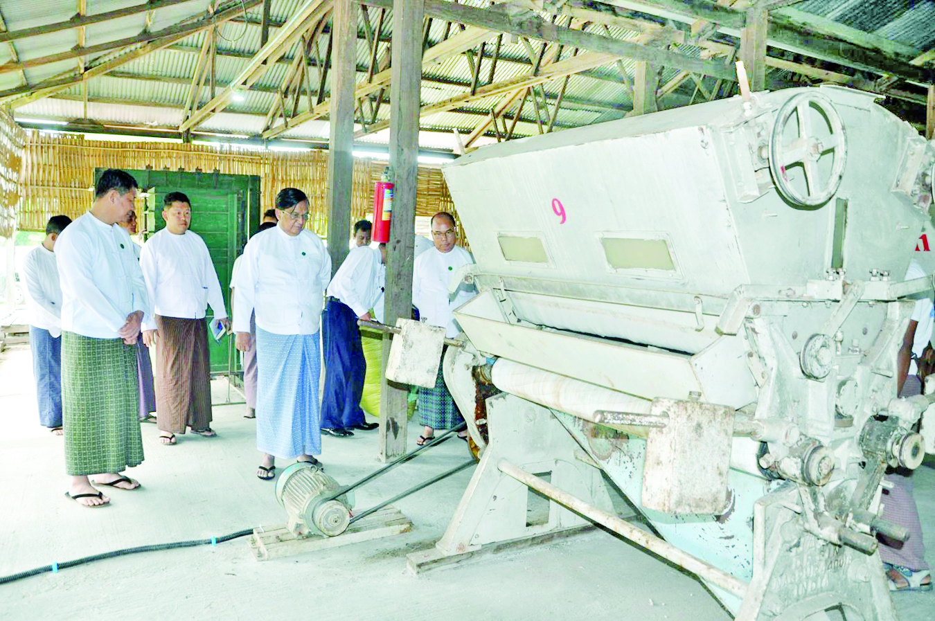 ထိုသို့ကြည့်ရှုစစ်ဆေးစဉ် ပြည်ထောင်စုဝန်ကြီးက လျှပ်စစ်မီးမရရှိသည့်ဒေသများရှိ တောင်သူများအနေဖြင့် နေရောင်ခြည်စွမ်းအင်သုံးဆိုလာစနစ်ဖြင့် ဝါများကြိတ်ခွဲနိုင်ရေးအတွက် စမ်းသပ်ဆောင်ရွက် ခြင်းဖြစ်ကြောင်း၊ ဝါစိုက်ပျိုးတောင်သူများအနေဖြင့် ထွက်ရှိသည့်ဝါများကို တိုက်ရိုက်ရောင်းချခြင်းထက် ဝါကြိတ်စက်ဖြင့်ကြိတ်ခွဲပြီး ဝါဂွမ်းပြုလုပ်ရောင်းချပါက အကျိုးအမြတ်ပိုမိုရရှိမည်ဖြစ်၍ အလေးထားဆောင်ရွက်ရမည်ဖြစ်ကြောင်း၊ ထိုသို့ကြိတ်ခွဲခြင်းဖြင့် အဆင့်မီဝါဂွမ်းများရရှိပြီး ချည်များထုတ်လုပ်ပါက ချည်များ၏အရည်အသွေးများ ပိုမိုကောင်းမွန်စေမည်ဖြစ်ကြောင်း၊ ပြည်တွင်း၌ အဆင့်မီချည်များ ထုတ်လုပ်နိုင်ပါက ပြည်ပမှချည်တင်သွင်းရမှုကို လျှော့ချနိုင်မည့်အပြင် အဆင့်မီပိတ်များ ရက်လုပ်နိုင်မည်ဖြစ်ကြောင်း၊ ဝါစိုက်တောင်သူများအနေဖြင့် ဝါကြိတ်ခွဲခြင်းလုပ်ငန်းများကို ကိုယ်တိုင်ဆောင်ရွက်နိုင်ခြင်းဖြင့် ဝင်ငွေတိုးတက်လာပြီး လူမှုစီးပွားဘဝများဖွံ့ဖြိုးတိုးတက်ကာ အလုပ်အကိုင်အခွင့်အလမ်းများကိုလည်း ဖန်တီးပေးနိုင်မည်ဖြစ်သောကြောင့် ကြိုးစားဆောင်ရွက်ကြရန် မှာကြားသည်။