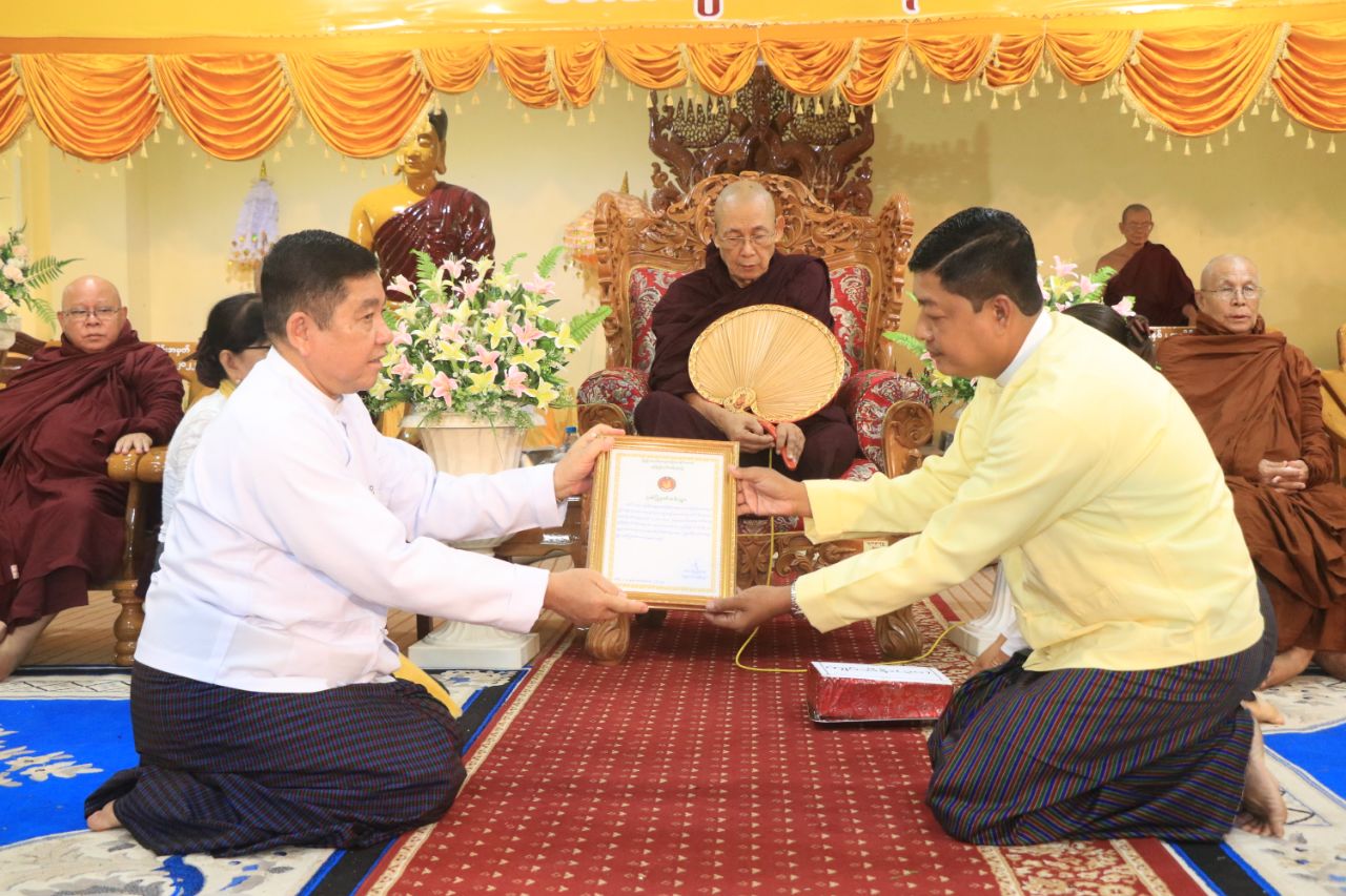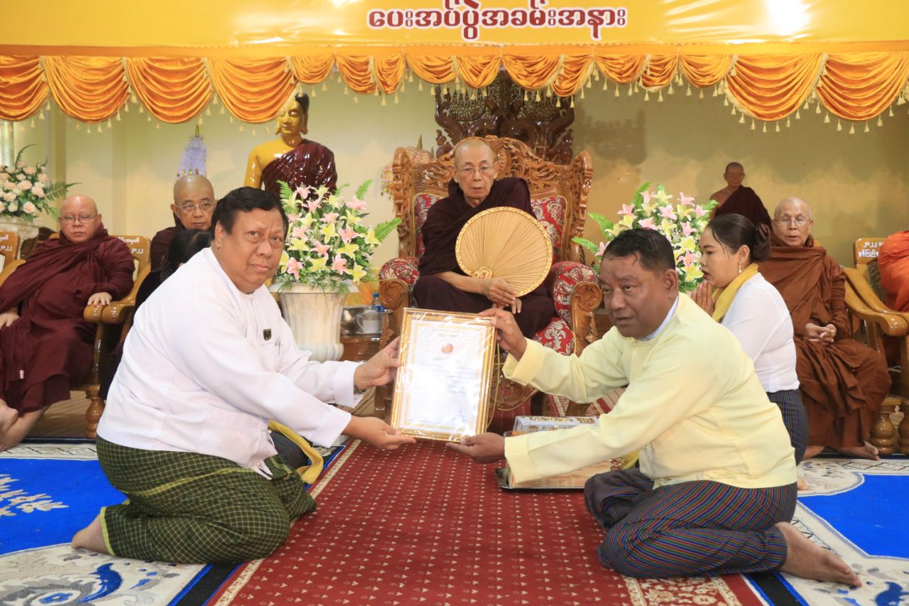 ထို့နောက် ပြည်နယ်ဝန်ကြီးချုပ်က ရေဘေးသင့်ပြည်သူများအတွက် ချောင်းဆုံမြို့နယ် ဗုဒ္ဓဘာသာကလျာဏယုဝအသင်းမှ အလှူငွေကျပ်သိန်း (၅၀၀) အားလည်းကောင်း၊ မွန်ပြည်နယ်၊ မြို့နယ်များရှိ ဗုဒ္ဓဘာသာကလျာဏယုဝအသင်းများမှ အလှူငွေကျပ် သိန်း (၃၀) အားလည်းကောင်း ပေးအပ်လှူဒါန်းခြင်းအပေါ် လက်ခံရယူခဲ့ပြီး ဂုဏ်ပြုမှတ်တမ်းလွှာများ ပြန်လည်ပေးအပ်ခဲ့သည်။