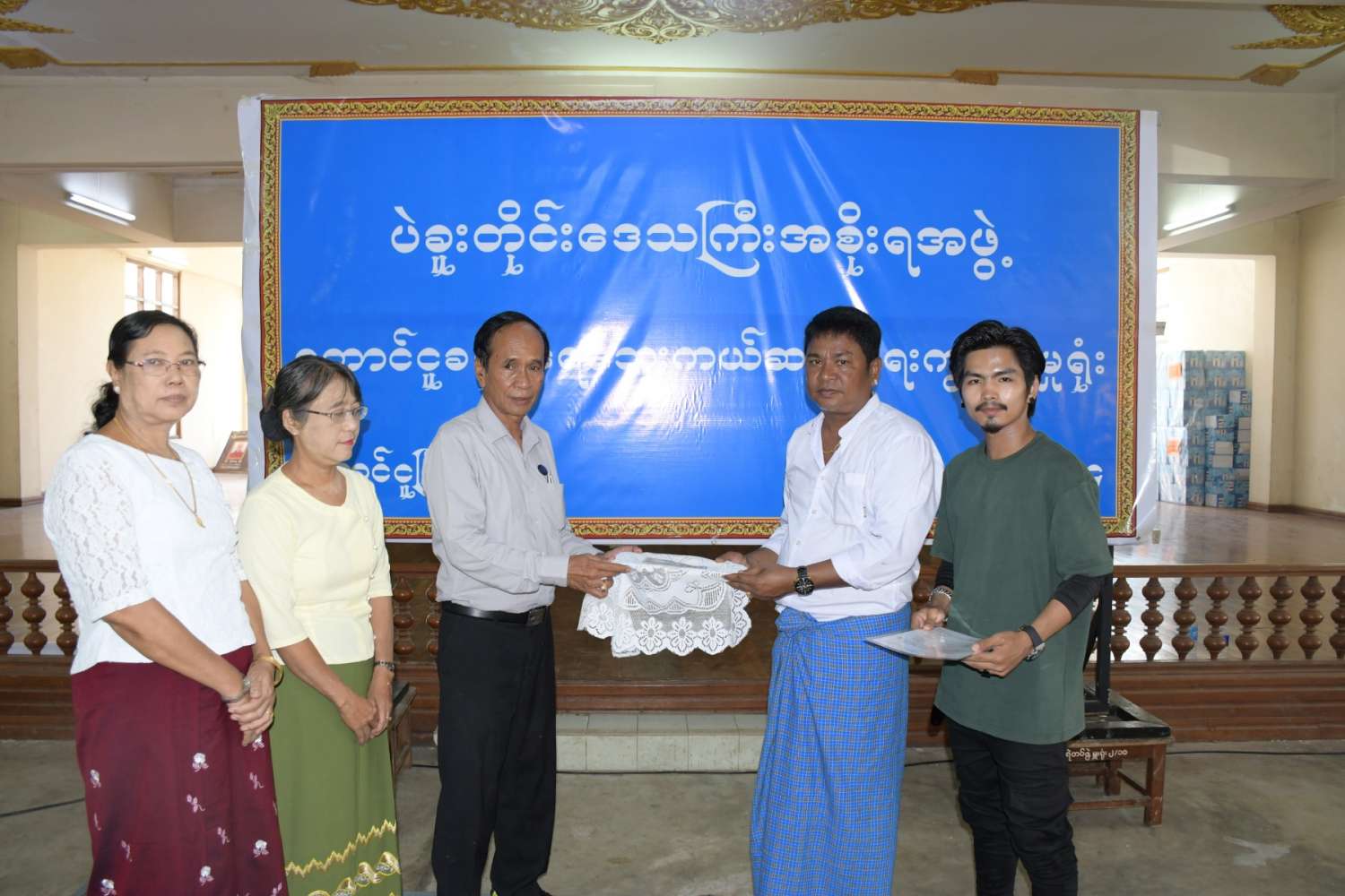 ထိုသို့လှူဒါန်းရာတွင် ရွှေပြည်သာ တစ်မြို့နယ်လုံးဆိုင်ရာဂီတအနုပညာရှင်များမှ ဆန်အပါအဝင် ငွေကျပ်သိန်း (၅၀) တန်ဖိုးရှိ စားသောက်ကုန်များနှင့် လှူဒါန်းငွေကျပ် (၁၀) သိန်း၊ စုစုပေါင်းကျပ်သိန်း (၆၀) ခန့်လာရောက်လှူဒါန်းရာ ပဲခူးတိုင်းဒေသကြီးအစိုးရအဖွဲ့မှ အဖွဲ့ဝင် သယံဇာတရေးရာဝန်ကြီးဦးတင်သိန်းက လက်ခံရယူပြီး ဂုဏ်ပြုမှတ်တမ်း ပြန်လည်ပေးအပ်ခဲ့သည်။
