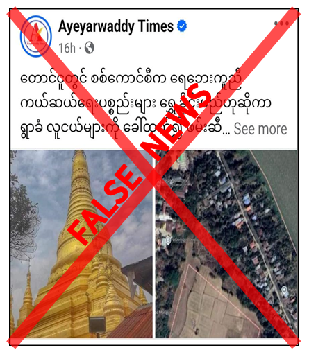 ပဲခူးတိုင်းဒေသကြီး၊ တောင်ငူမြို့၊ အမှတ် (၂၀) ရပ်ကွက်၊ မြို့ကြီးရွာတွင် တပ်မတော်က ရေဘေးကူညီကယ်ဆယ်ရေးပစ္စည်းများ သယ်ရမည်ဟုဆိုကာ ရွာထဲရှိလူငယ်များကို ခေါ်ထုတ်ဖမ်းဆီးသွားကြောင်း တရားမဝင်ပြည်ဖျက်မီဒီယာများက သတင်းအတု သတင်းအမှားများ မဟုတ်မမှန် ရေးသားဖြန့်ဝေလျှက်ရှိကြောင်း တွေ့ရသည်။