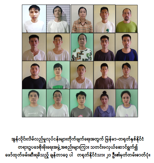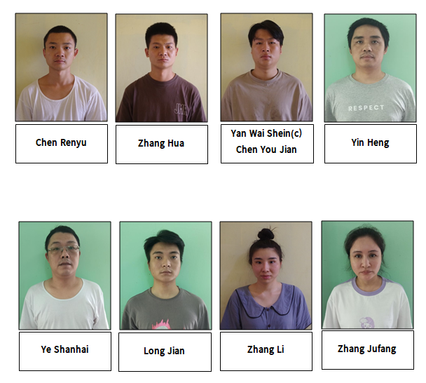 ထိုသို့ နှစ်နိုင်ငံတရားဥပဒေစိုးမိုးရေးအဖွဲ့အစည်းများကြား သတင်းဖလှယ်ပူးပေါင်းဆောင်ရွက်လျက်ရှိရာ ရန်ကုန်မြို့နှင့် မန္တလေးမြို့တို့တွင် တရုတ်နိုင်ငံမှ အလိုရှိတရားခံပြေး ချန်တာဝေ့ ဦးဆောင်သော ဒုစရိုက်သမားများ ရောက်ရှိနေပြီး အွန်လိုင်းလိမ်လည်မှု(ကျားဖြန့်)လုပ်ငန်းများ လုပ်ကိုင်လျက်ရှိကြောင်း သတင်းအရ ၂၀၂၄ ခုနှစ်၊ ဇူလိုင်လအတွင်း ဝင်ရောက်ရှာဖွေဖမ်းဆီးခဲ့ရာ တရုတ်နိုင်ငံသား ချန်တာဝေ့နှင့် ရန်လျန်အပါအဝင် တရုတ်နိုင်ငံသား တရားခံ ၂၀ ဦးတို့အား ဖော်ထုတ်ဖမ်းဆီးရမိခဲ့သည်။
