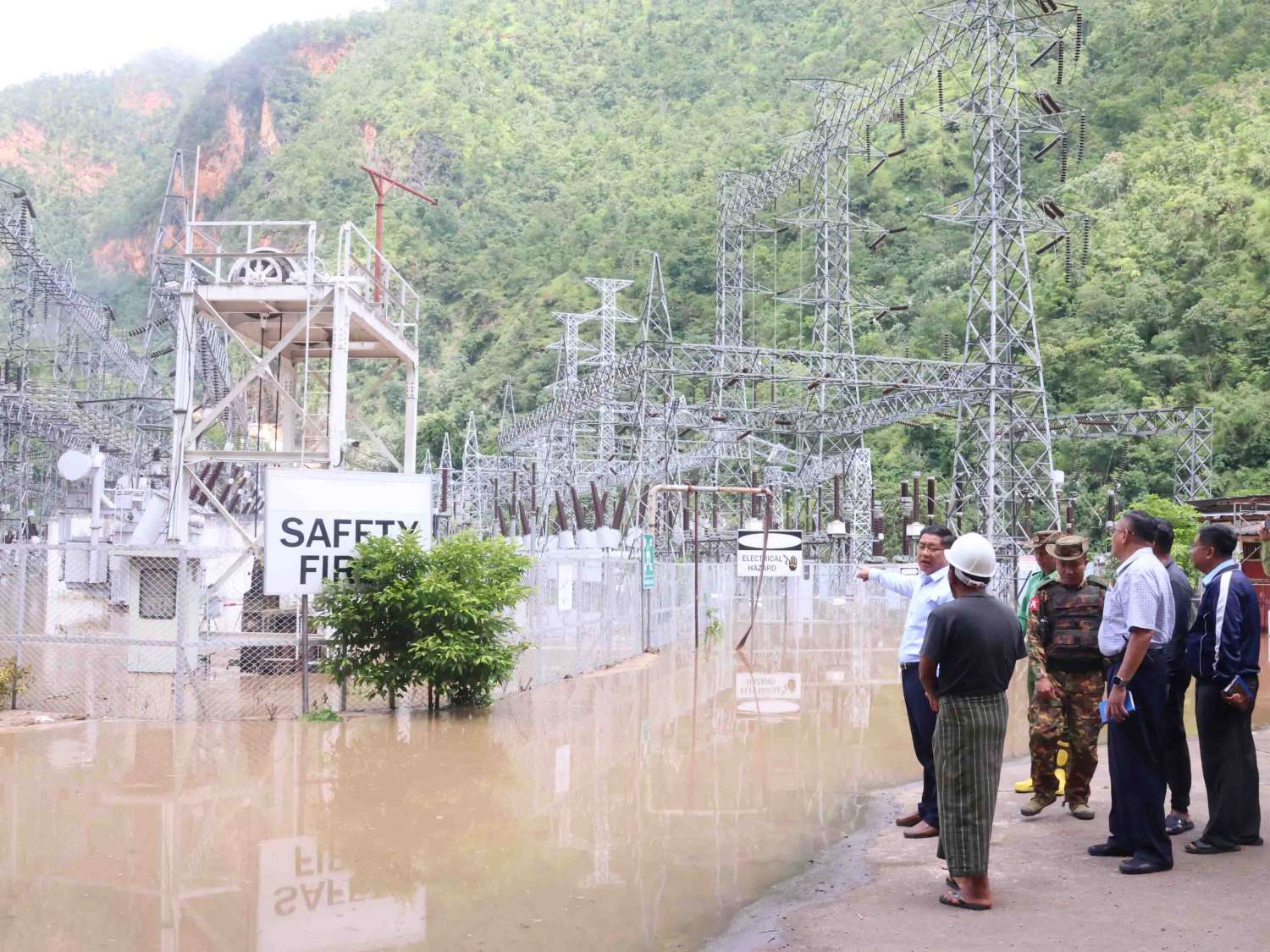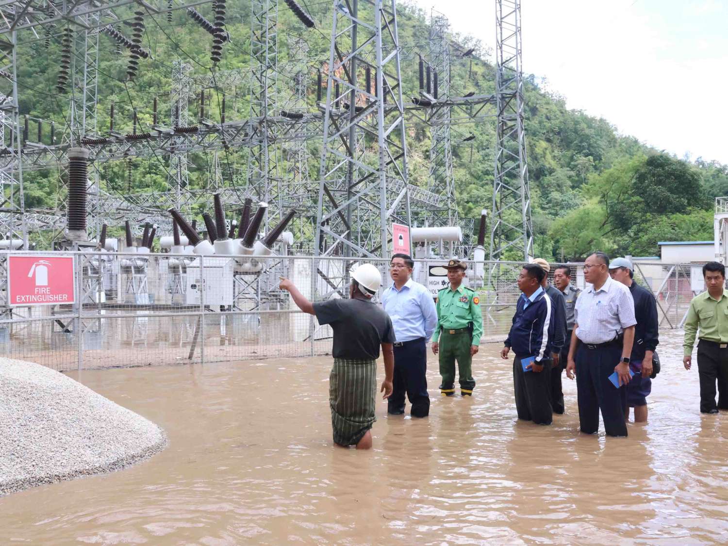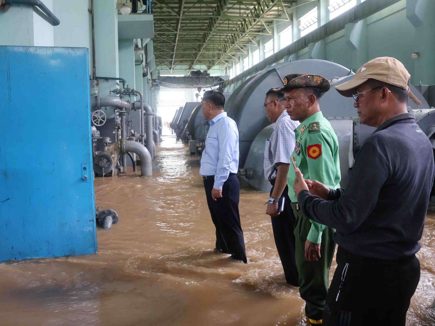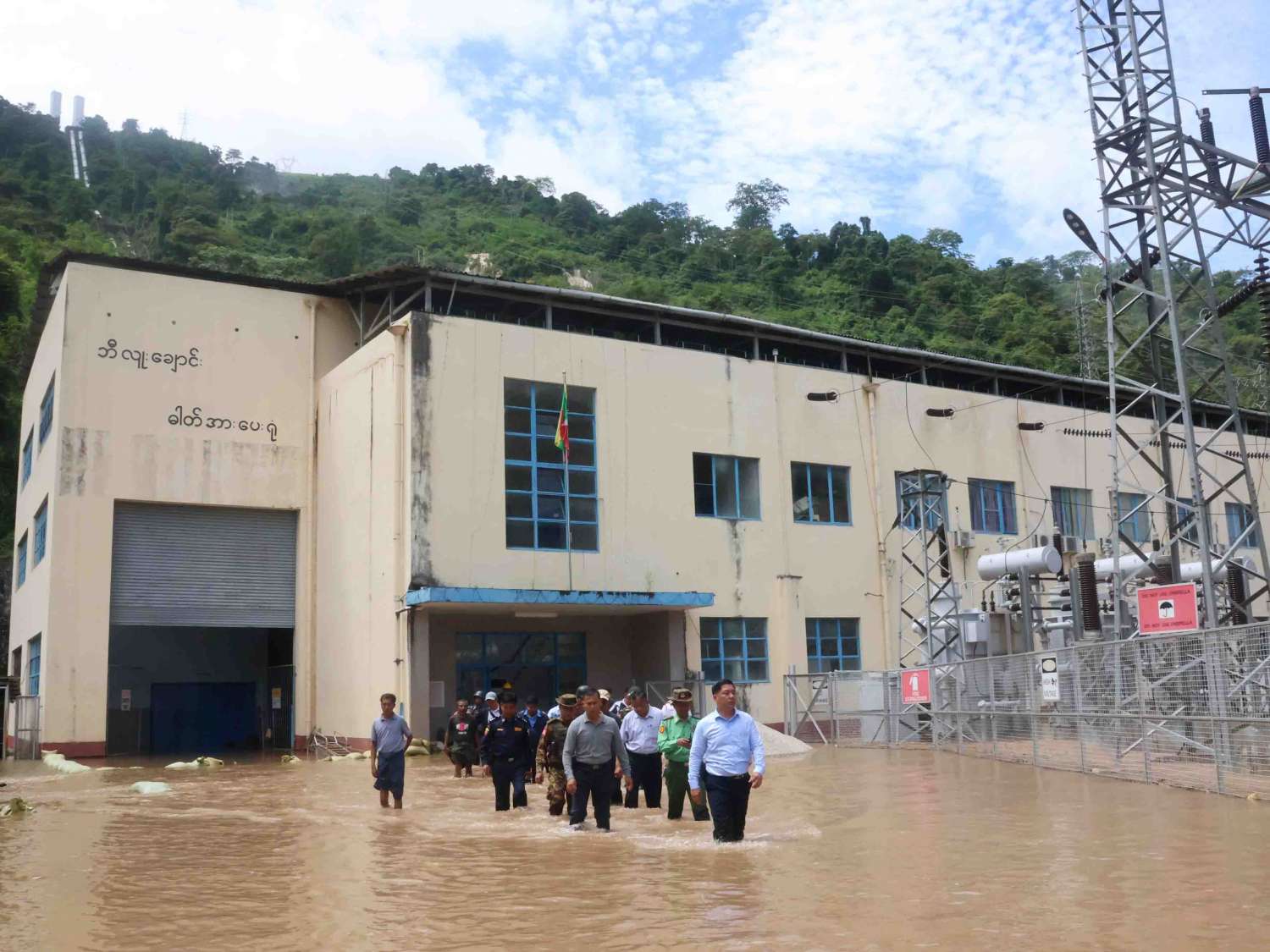 ထို့နောက် အမှတ်(၁)စက်ရုံနှင့် အမှတ်(၂)စက်ရုံတို့အကြား ဘီလူးချောင်းရေမြှင့်တက်မှုကြောင့် ရေလွှမ်းဧရိယာဖြစ်ပေါ်နေမှုအခြေအနေများနှင့် ၎င်းနေရာမှစက်ရုံများသို့ ရေတိုက်စားစီးဆင်းမှုမရှိစေရေးဆောင်ရွက်နေသည့် တာအသစ်တည်ဆောက်နေမှုနှင့် တာတမံအဟောင်းပြန်လည်ပြုပြင်နေမှုတို့အား သွားရောက်ကြည့်ရှုခဲ့ကာ ယခုရေလွှမ်း၍ ပျက်စီးသွားသော မြေသားတမံအားတမံအသစ်နှင့် တစ်ဆက်တည်းဖြစ်စေရေး၊ ရေစီးကြောင်း ဖြောင့်တန်းစေရေးနှင့် ဘီလူးချောင်းအတွင်း ရေပြန်လည်၍ စီးဝင်စေရေးအမြန်ဆောင်ရွက်နိုင်ရန် တာဝန်ရှိသူများနှင့် ပေါင်းစပ်ညှိနှိုင်းကာလိုအပ်သည်များ ဖြည့်ဆည်းဆောင်ရွက်ပေးခဲ့သည်။