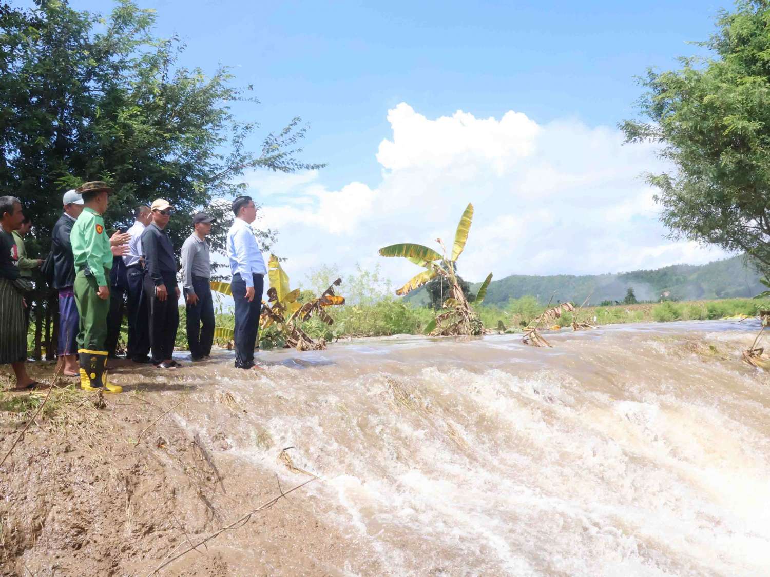 ကယားပြည်နယ်အစိုးရအဖွဲ့ ပြည်နယ်ဝန်ကြီးချုပ် ဦးဇော်မျိုးတင်နှင့် တာဝန်ရှိသူများသည် ယမန်နေ့ နံနက်က လွိုင်ကော်မြို့နယ်ရှိ ဘီလူးချောင်း အမှတ်(၂) ရေအားလျှပ်စစ် ဓါတ်အားပေးစက်ရုံ(လောပိတ)သို့ ရောက်ရှိရာ အမှတ်(၂)စက်ရုံတာဝန်ခံ ဦးဇော်မင်းထွန်းက လက်ရှိဘီလူးချောင်းရေမြင့်တက်သဖြင့် ရေကြီးရေလျှံမှုဖြစ်ပေါ်ကာ ရေစီးကြောင်းများမှတစ်ဆင့် စက်ရုံအတွင်းရေများဝင်ရောက်မှုူအခြေအနေများကို ရှင်းလင်းတင်ပြသည်။ ထို့နောက် ဝန်ကြီးချုပ်နှင့်တာဝန်ရှိသူများသည် စက်ရုံအတွင်းရေဝင်ရောက်မှုအခြေအနေများ၊ Switch Yard နှင့် စက်ရုံဝန်းအတွင်း ရေကြီးရေလျှံမှုမဖြစ်ပေါ်စေရေးအတွက် ကြိုတင်ကာကွယ်ထားသည့် သဲအိတ်များ ကာရံထားရှိခဲ့မှုအခြေအနေများနှင့် ဘီလူးချောင်းရေတိုက်စားမှုကြောင့် ပျက်စီးသွားသော ရေထိန်းတမံအသစ်ပြန်လည်တည်ဆောက်နိုင်ရန်၊ ရေစီးလမ်းကြောင်းများ ကောင်းမွန်စေရေးဆောင်ရွက်သွားရန်နှင့် စက်ရုံအတွင်းထပ်မံ၍ ရေကြီးရေလျှံမှုမဖြစ်ပေါ်စေရေးအတွက် သဲအိတ်များထပ်မံတိုးမြှင့် ကာရံထားရန်၊ ရေများအမြန်ဆုံးပြန်လည် စုပ်ထုတ်နိုင်ရေး ဌာနဆိုင်ရာတာဝန်ရှိသူများနှင့်ပေါင်းစပ်ညှိနှိုင်း ဖြည့်ဆည်းဆောင်ရွက်ပေးခဲ့သည်။