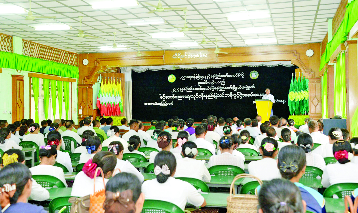 ပညာရေးဝန်ကြီးဌာနနှင့် နေပြည်တော်ကောင်စီတို့ ပူးပေါင်းဆောင်ရွက်မည့် ပြည်ထောင်စုနယ်မြေ နေပြည်တော် မြို့နယ်ရှစ်မြို့နယ် စဉ်ဆက်ပညာရေးလုပ်ငန်းအတွက် နည်းပြသင်တန်းဖွင့်ပွဲကို ယနေ့နံနက်ပိုင်းတွင် နေပြည်တော်ဇမ္ဗူသီရိမြို့နယ် အမှတ် (၆) အခြေခံပညာ အထက်တန်းကျောင်းခန်းမတွင် ကျင်းပသည်။